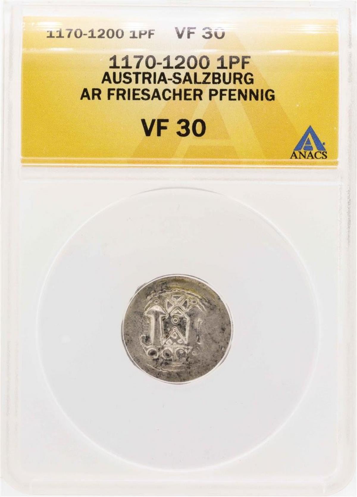 One 1170-1200 Austria-Salzburg AR Friesacher Pfennig ANACS VF30. ANACS Appraised.