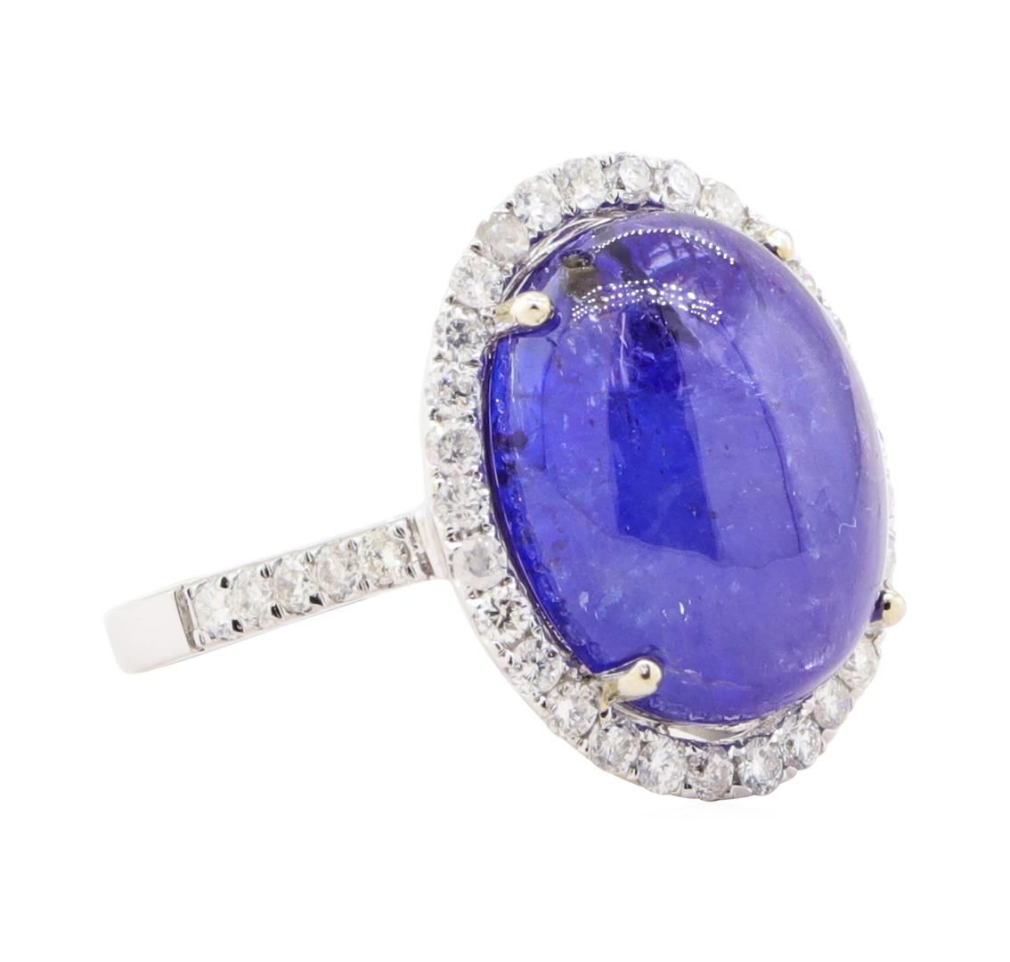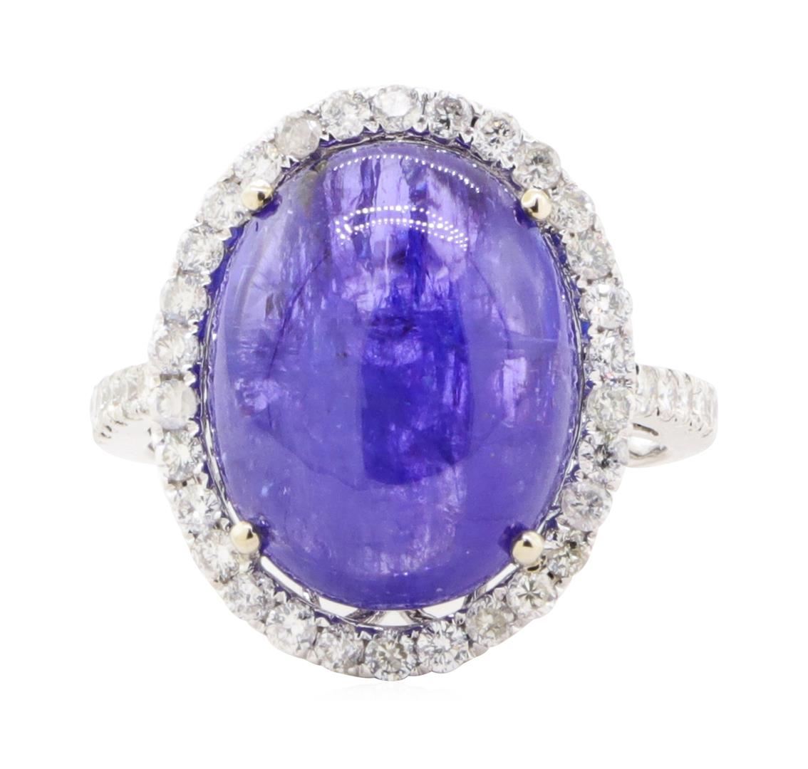 One electronically tested 14KT white gold lady's cast fashion halo ring with a cathedral shank with a bright polish finish. Trademark is Orianne. Identified with markings of '14K'. Condition is new, good workmanship. Containing: One prong set oval cabocho GAS Appraised.