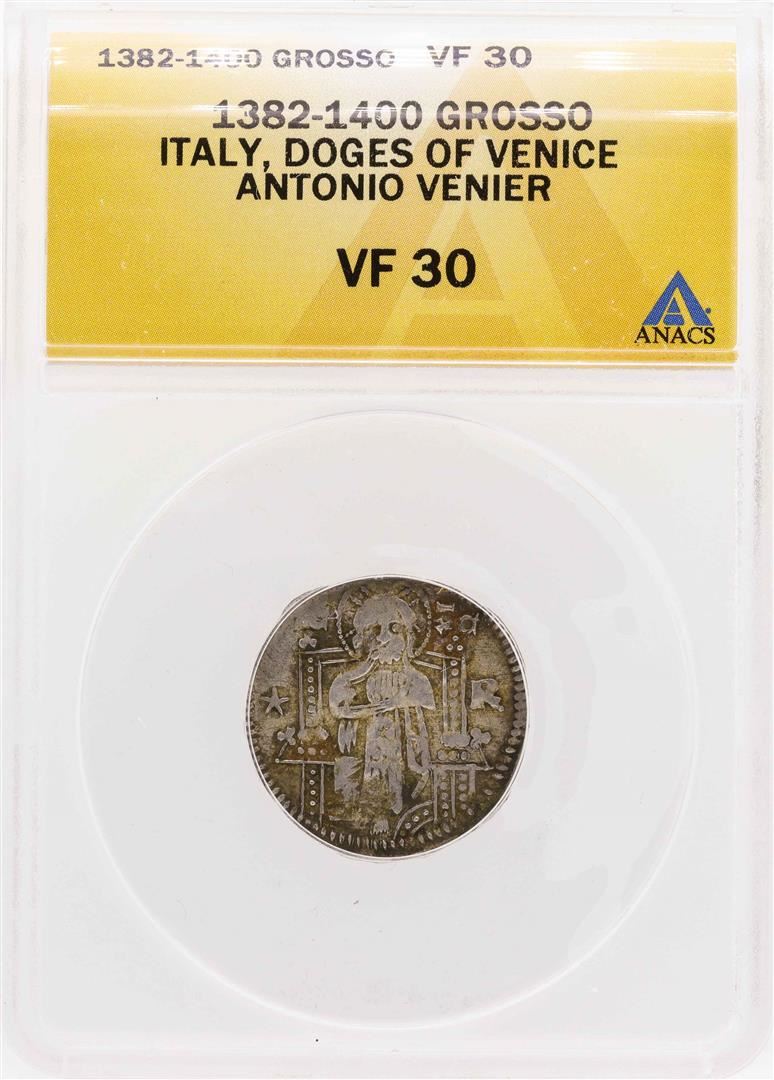 One 1382-1400 Grosso Italy Doges Of Venice Antonio Venier CoinANACS VF30. ANACS Appraised.
