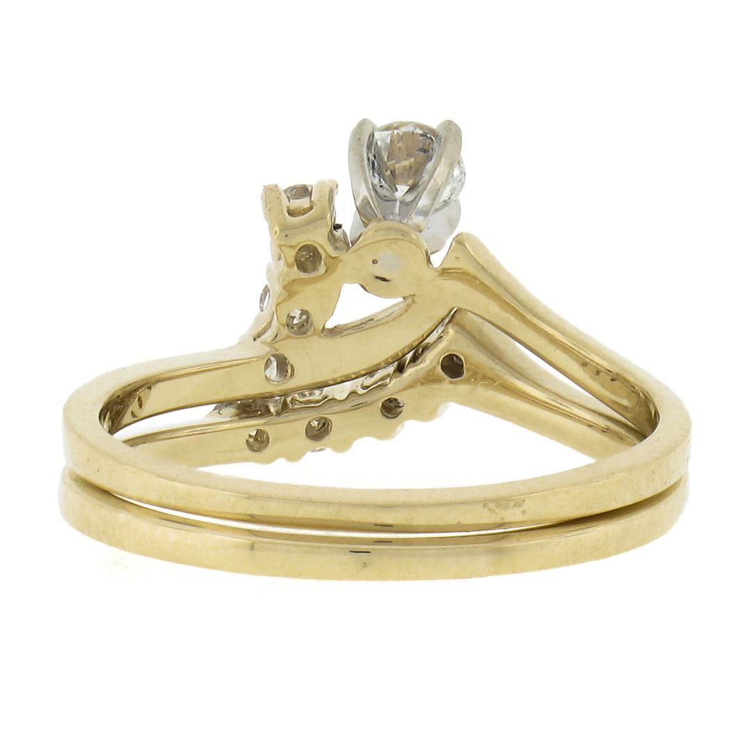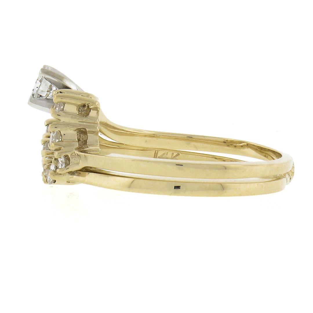 A solid 14k yellow gold ring & band set, with 8 round cut natural diamonds (G/H- SI1/SI2 ; 0.40ctw). The ring is size 6.0, weighs a total of 3.18 grams, and measures 9.7mm wide.
