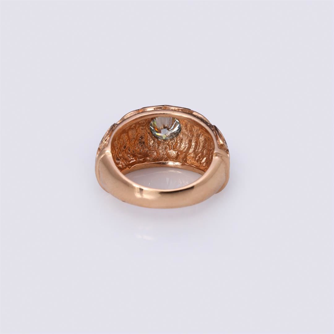 14K Rose Gold & Moissanite Ring containing one round light blue moissanite weighing approximately 1.0 cts. Total weight of ring is 8.2 gm. Estimated retail value $2,500.