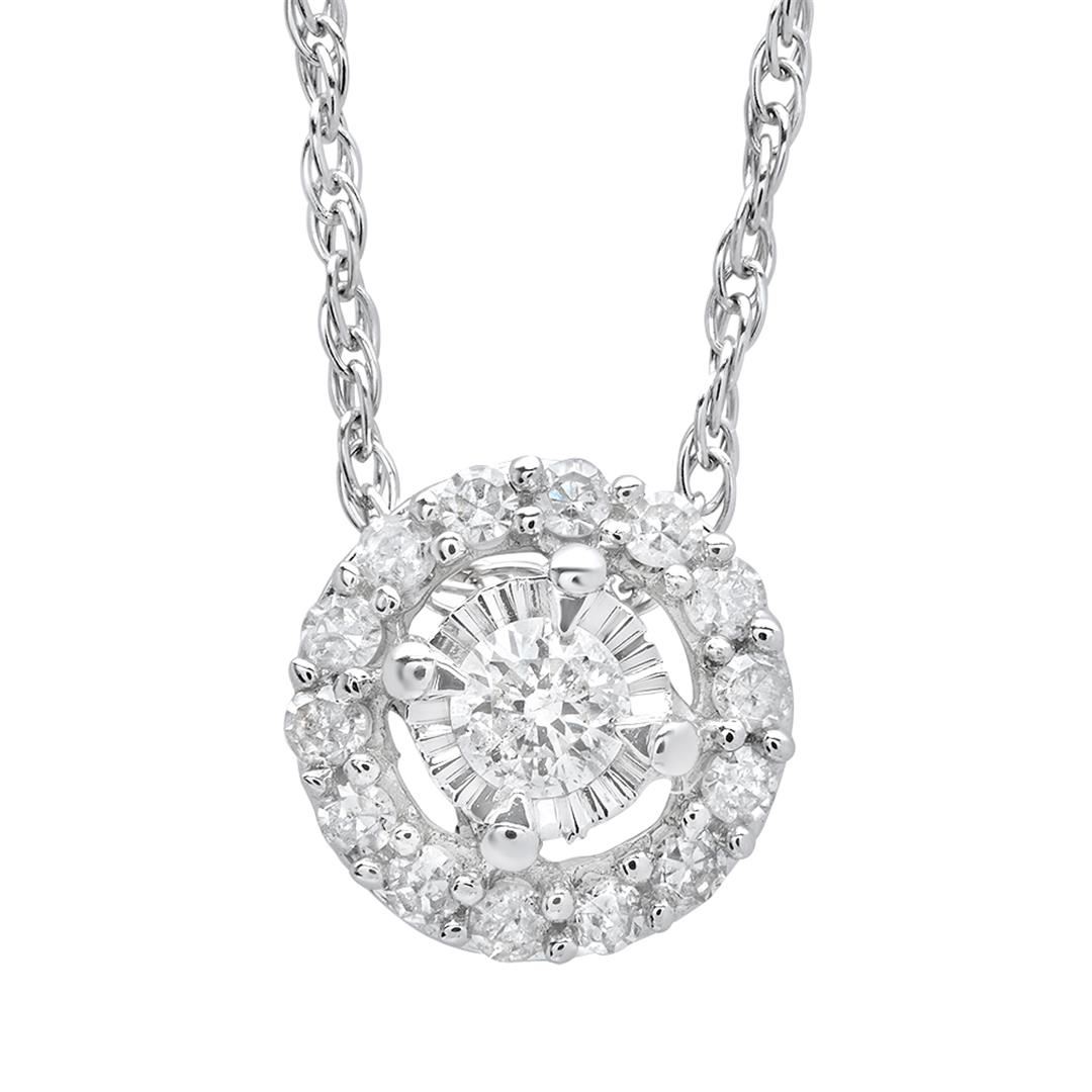 One 14K White Gold 0.10CTW Diamond Pendant Necklace, (SI3/SI3/H-I) - Product Specification: Stone: Diamond Stone 2: Diamond Stone 2 Color: SI3 Stone 2 Custom: H-I Stone 2 Type: Round Stone 2 Weight: 0.06 Stone Clarity: SI3 Stone Color: H-I Stone type: Round Stone Weight: 0.04 Weight: 1