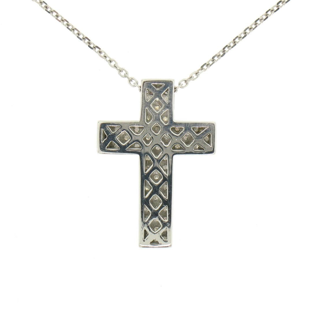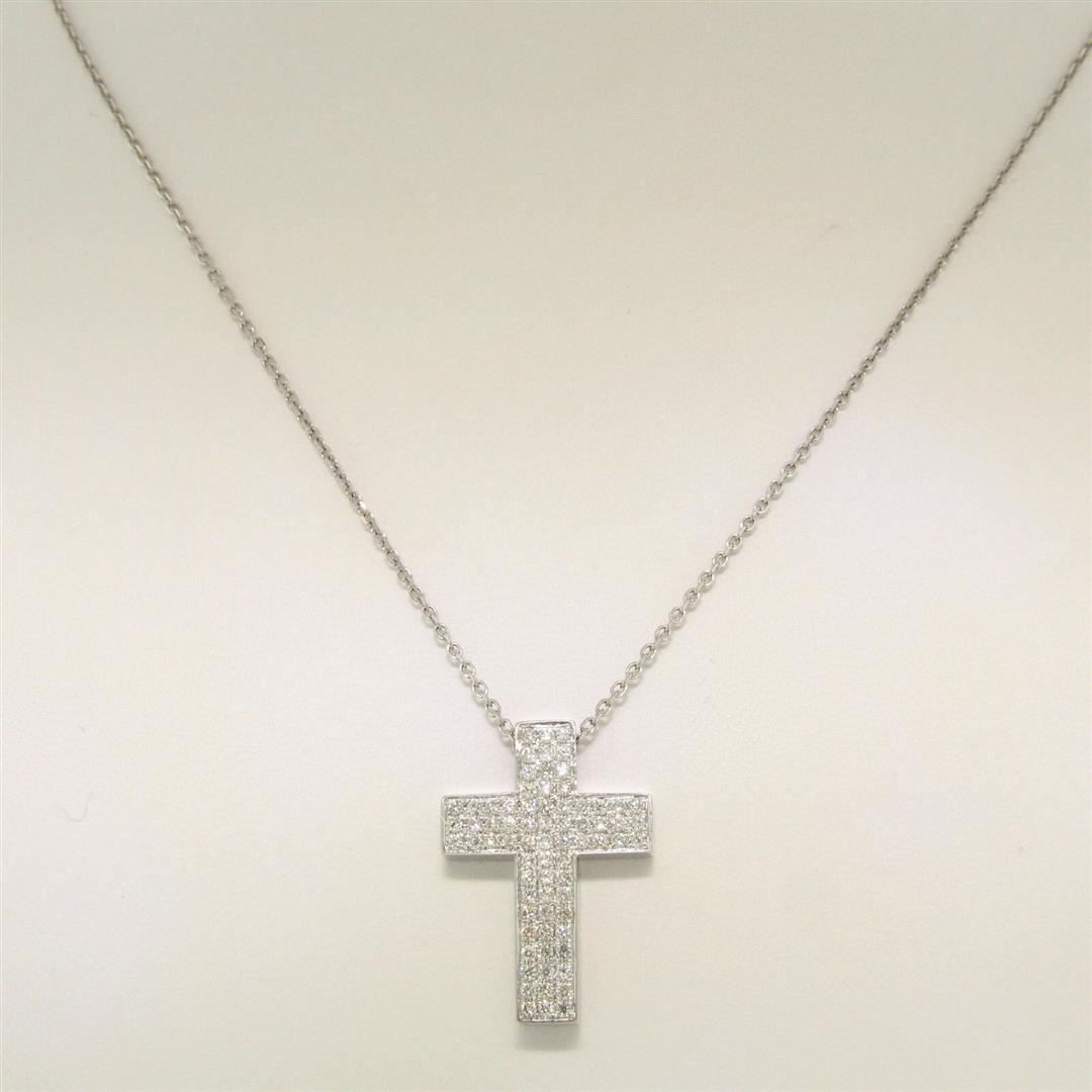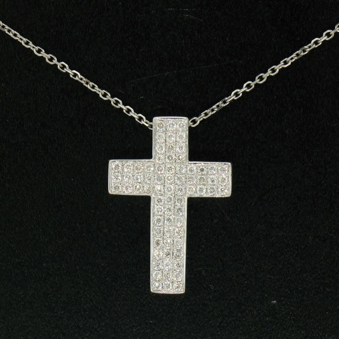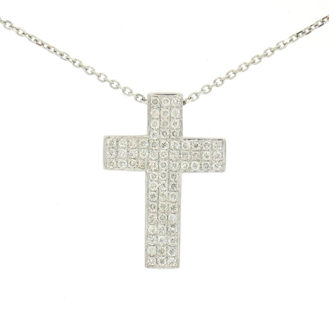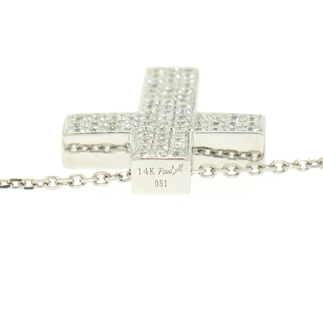 One 14K White Gold 0.51ctw Micro Pavé Diamond Cross Pendant w/ 18" Cable Link Chain. Item Details: Material: 14k Solid White Gold, Weight: 4.9 Grams, Stone(s): (72) Natural Genuine Diamonds - Round Cut - Micropavé Set - VS1/VS2 Clarity - F/G Color - 0.51ctw (approx.), Chain Type: Diamond Cut Cable Link Chain, Chain Length: 18 Inches, Clasp: Lobster Claw Clasp, Width: 15.5mm, Height: 22.22mm Thickness: 3.7mm Signature: 14K Paul Z. 051 Condition: Like New!