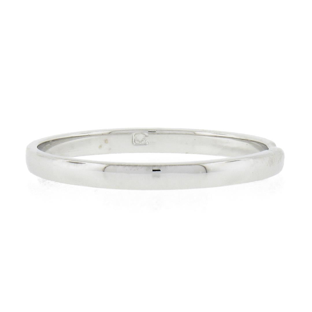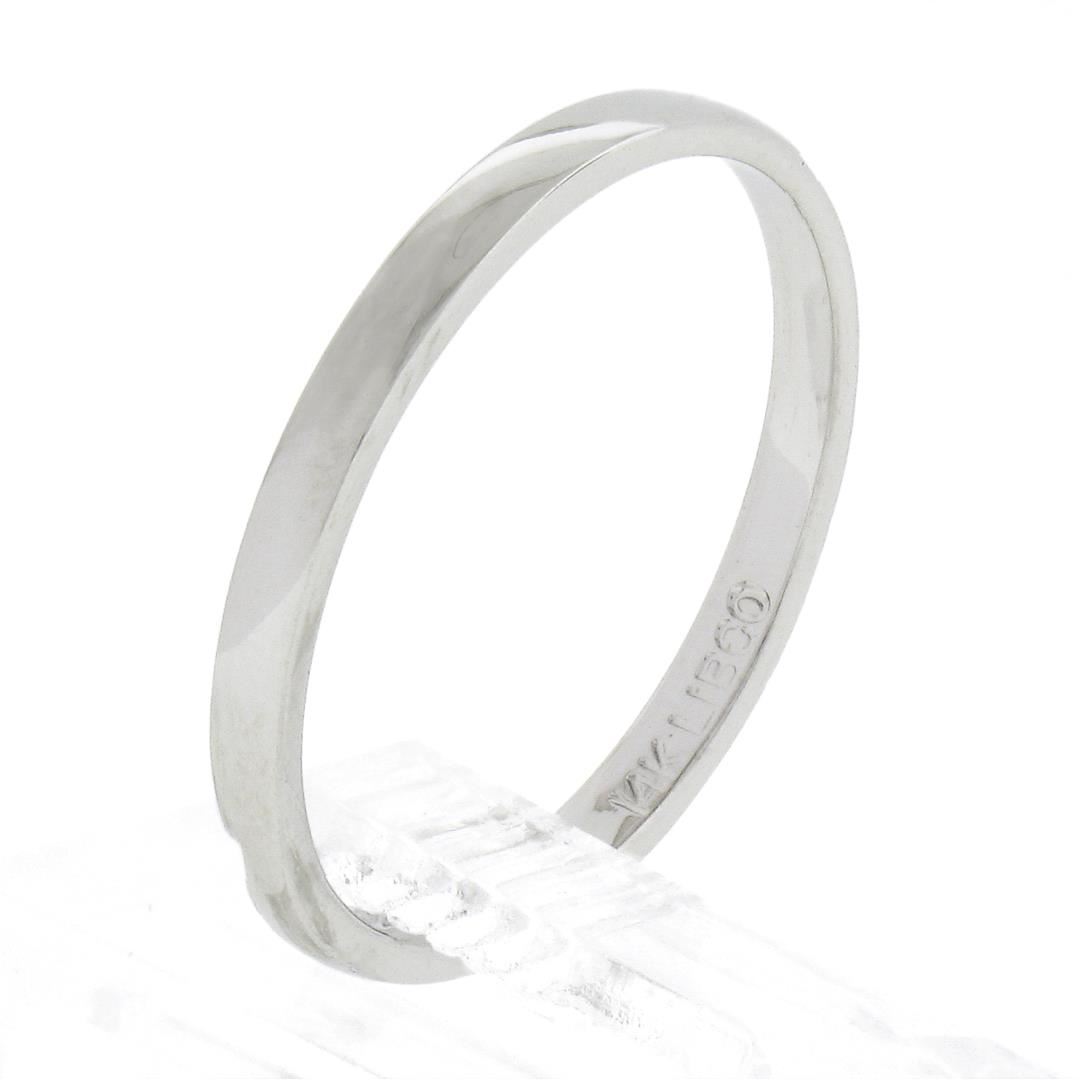 A solid 14k white gold band ring. The ring is size 6.5, weighs a total of 1.35 grams, and measures 1.9mm wide.