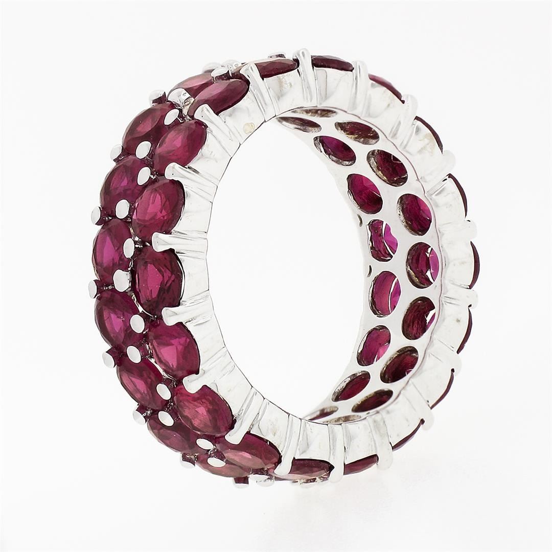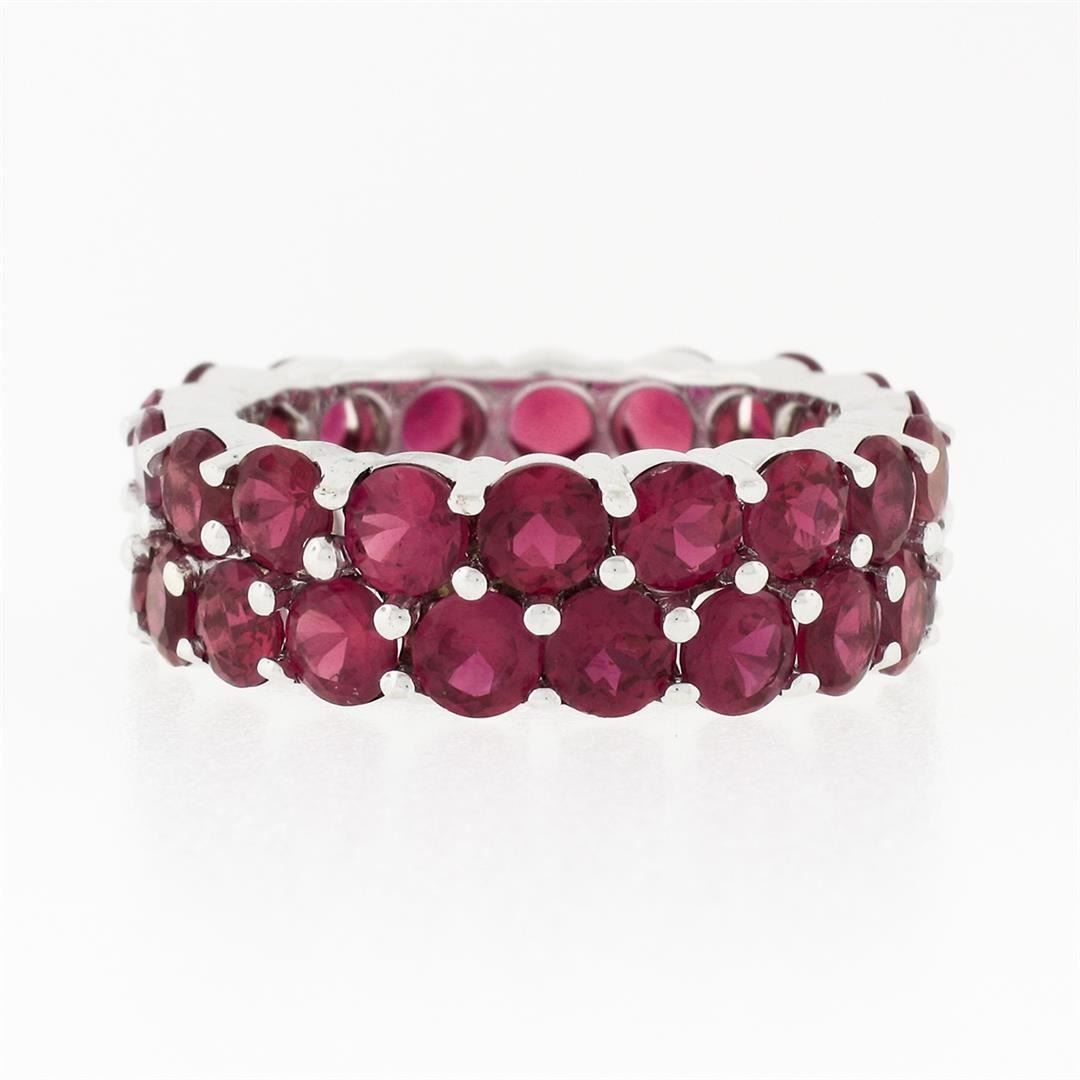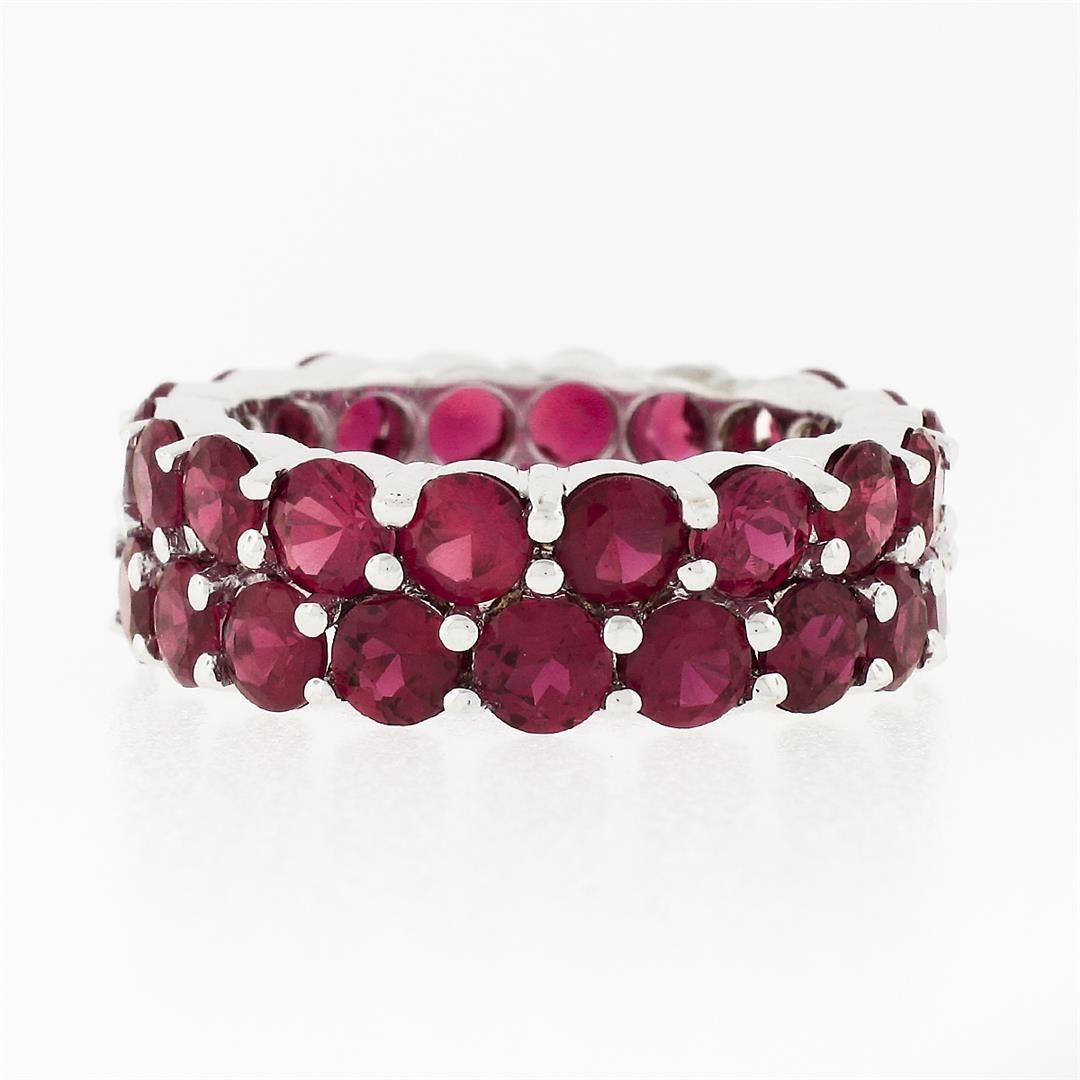 14K White Gold Round Brilliant Red Stone Dual Row Eternity Wide Band Ring Sz 6