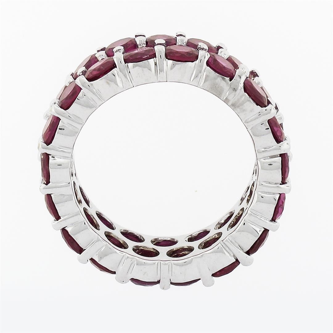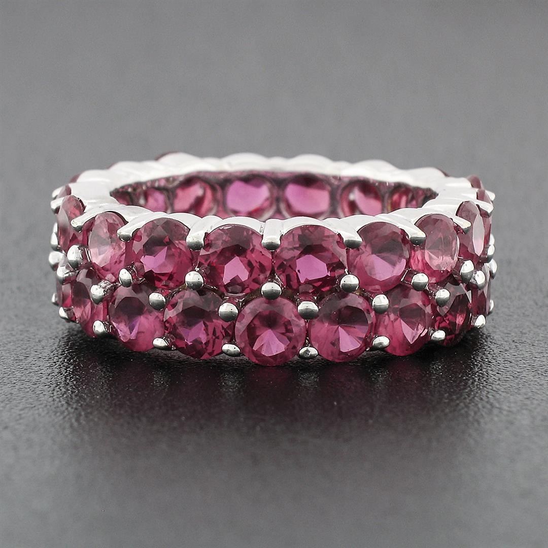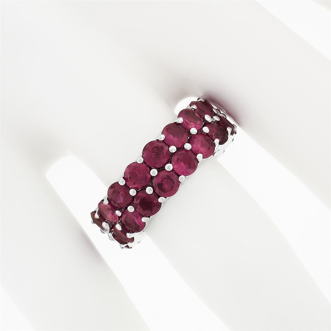 14K White Gold Round Brilliant Red Stone Dual Row Eternity Wide Band Ring Sz 6