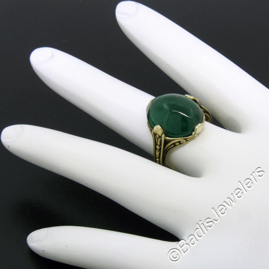 14K Yellow Gold 10.03 ctw GIA Oval Cabochon VERY Fine Green Emerald Ring
