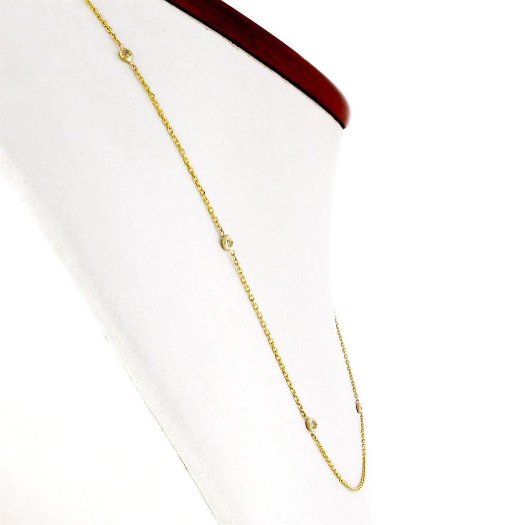 14K Yellow Gold .12 ctw 6 Bezel Station Round Diamond by the Yard Chain Necklace