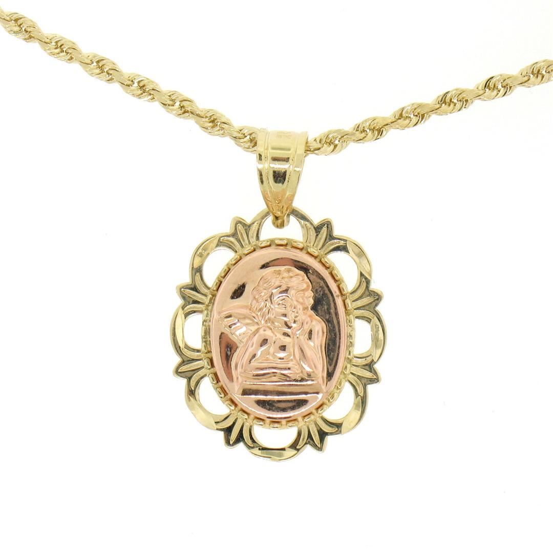 14K Yellow & Rose Gold Guardian Angel God Prayer Pendant 18  Rope Chain Necklace