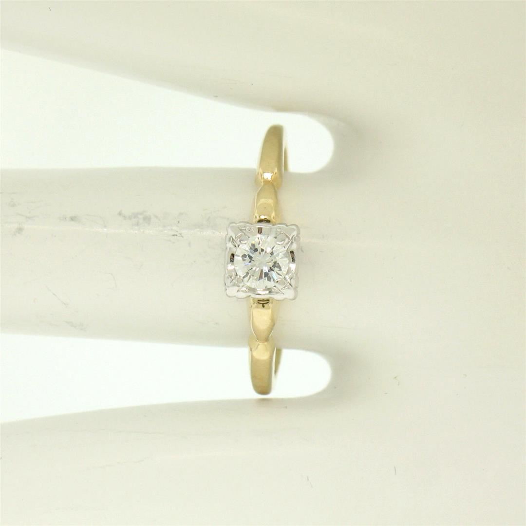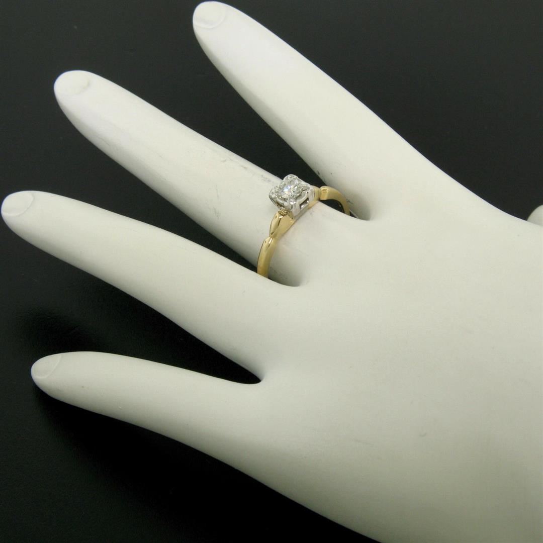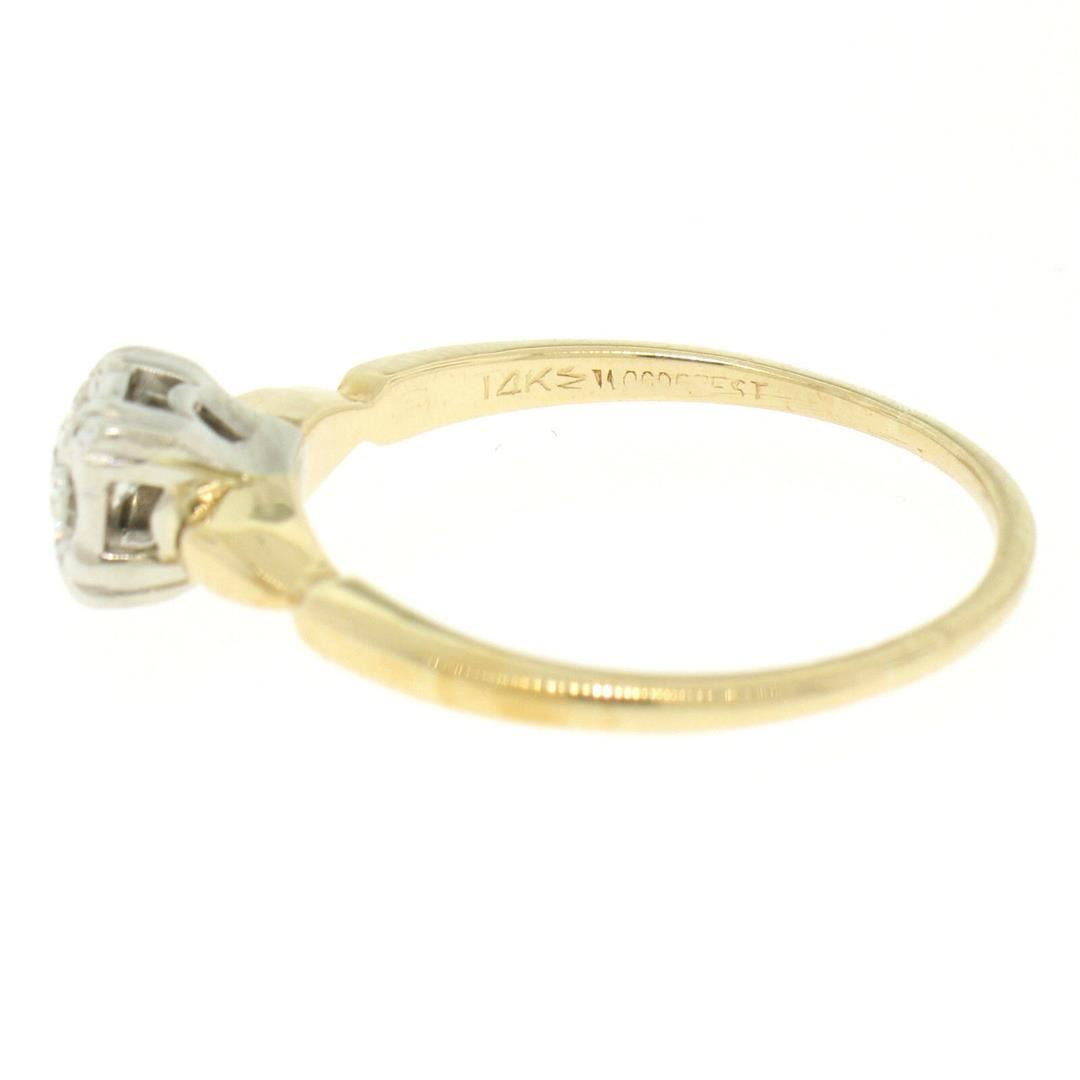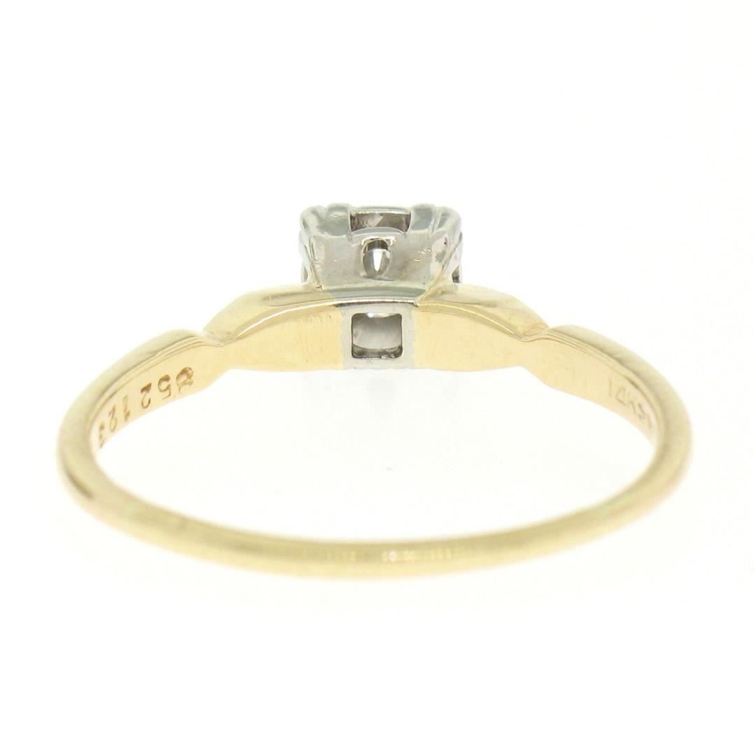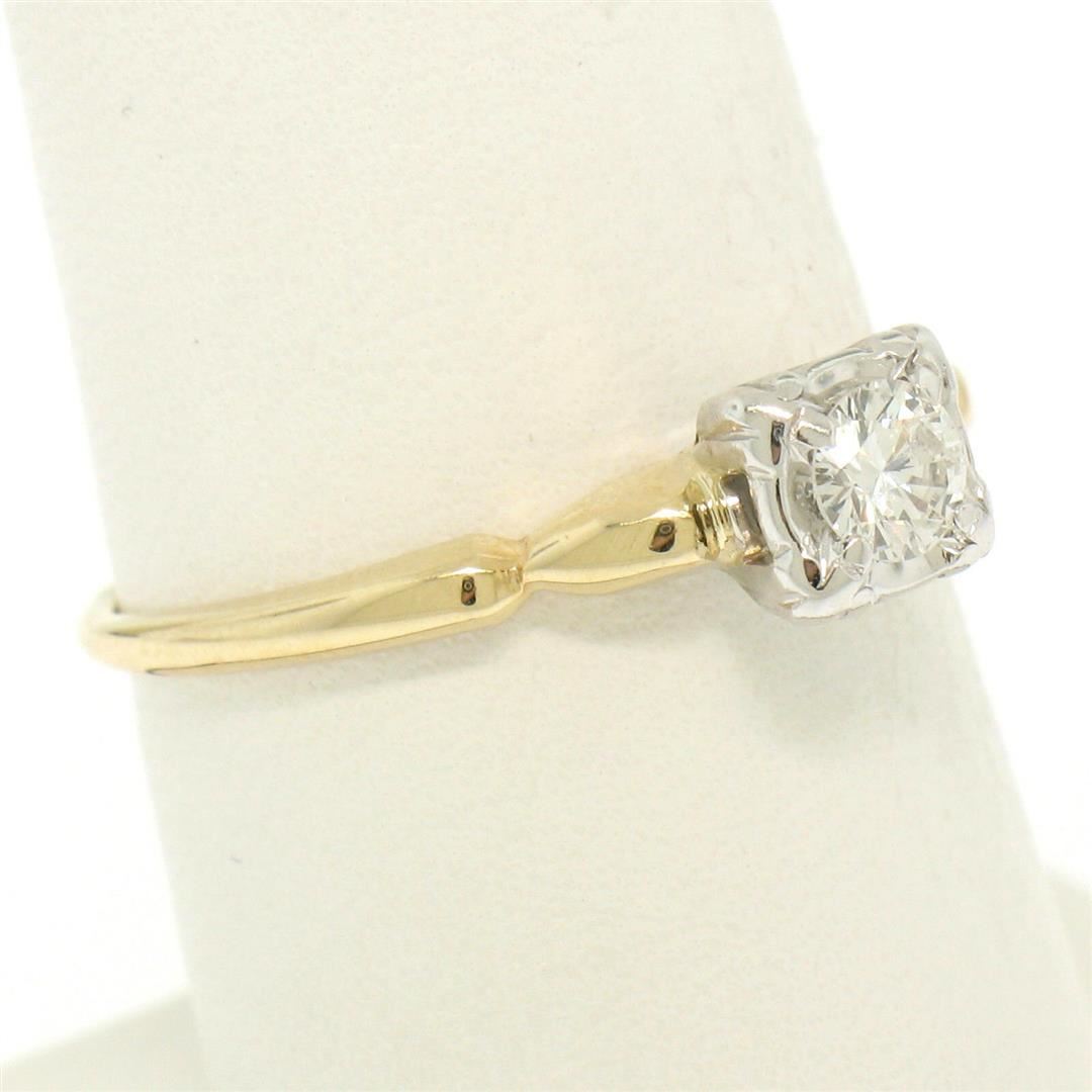 One Vintage 14K Yellow & White Gold Illusion Prong Set 0.25ct Diamond Solitaire Ring. Item Details: Material: 14k Solid Yellow and White Gold, Weight: 2.40 Grams, Stone(s): (1) Natural Genuine Diamond - Round Brilliant Cut - Illusion Prong Set - F Color - VS1 Clarity, Total Carat Weight: 0.25 (approx.), Ring Size: 8.0 (We can custom size this ring.), Ring Width: 5.50mm, Ring Height: 6.50mm rise off the finger, Condition: Vintage piece. Excellent, ready to wear condition!