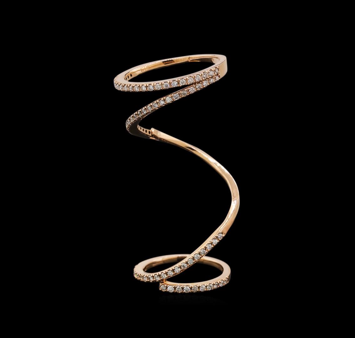 One electronically tested 14KT rose gold ladies cast diamond ring with a bright polish finish. Identified with markings of "K14". Condition is new. Containing: Seventy-Five prong set round brilliant cut diamonds, measuring 1.00 - 1.00 x 0.60mm (depth est.) approximate total weight of 75 Stones = 0.44ct. Clarity: SI-2 to I-2. Color: I - J, Cut is Good. Diamonds are graded in the mounting, unless otherwise stated. Total Weight of Diamonds 0.44ct. Total Weight of Ring 4.60 grams. GGL Appraised at $1,730.00.