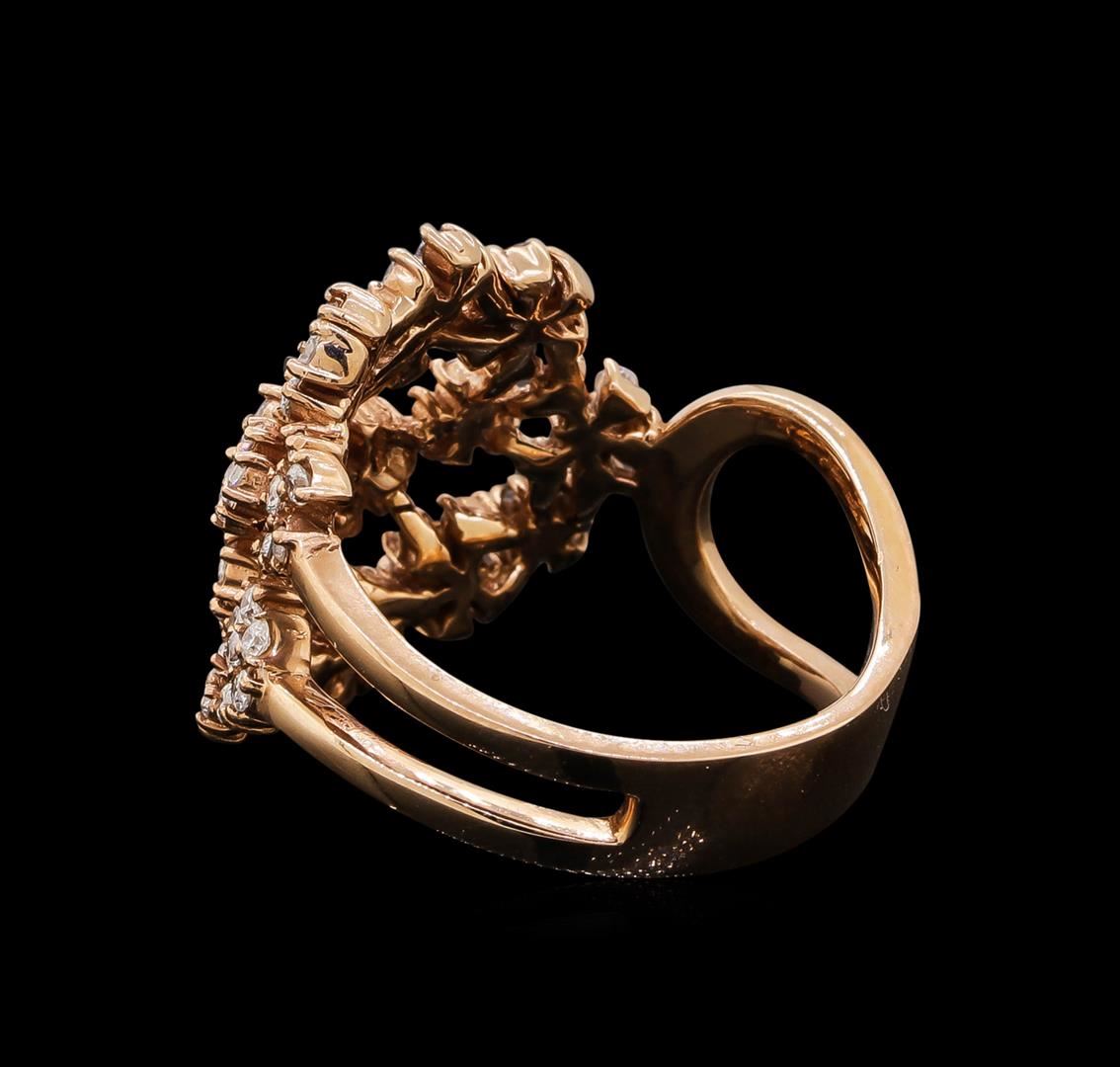 One electronically tested 14KT rose gold ladies combination cast & assembled diamond ring with a bright polish finish. Identified with markings of "585". Condition is new. Containing: One Hundred Eight prong set round brilliant cut diamonds, measuring 1.30 - 1.30 x 0.78mm (depth est.) approximate total weight of 108 Stones = 0.86ct. Clarity: SI-2 to I-1. Color: I - J, Cut is Good. All diamonds are graded in the mounting, unless otherwise stated. Total Weight of Diamonds 0.86ct. Total Weight of Ring 5.30 grams. GGL Appraised.
