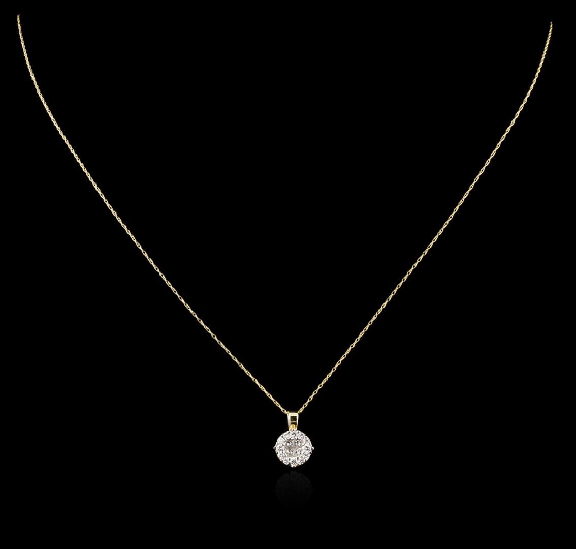 One pendant with chain featuring: 14KT yellow and white gold weighing 1.70 grams containing diamonds with a total weight of 0.40ct.