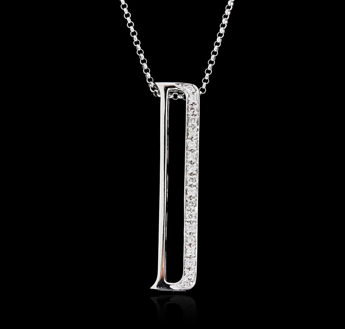 One pendant with chain resembling the letter D featuring: 14KT white gold weighing 4.30 grams containing diamonds with a total weight of 0.16ct.