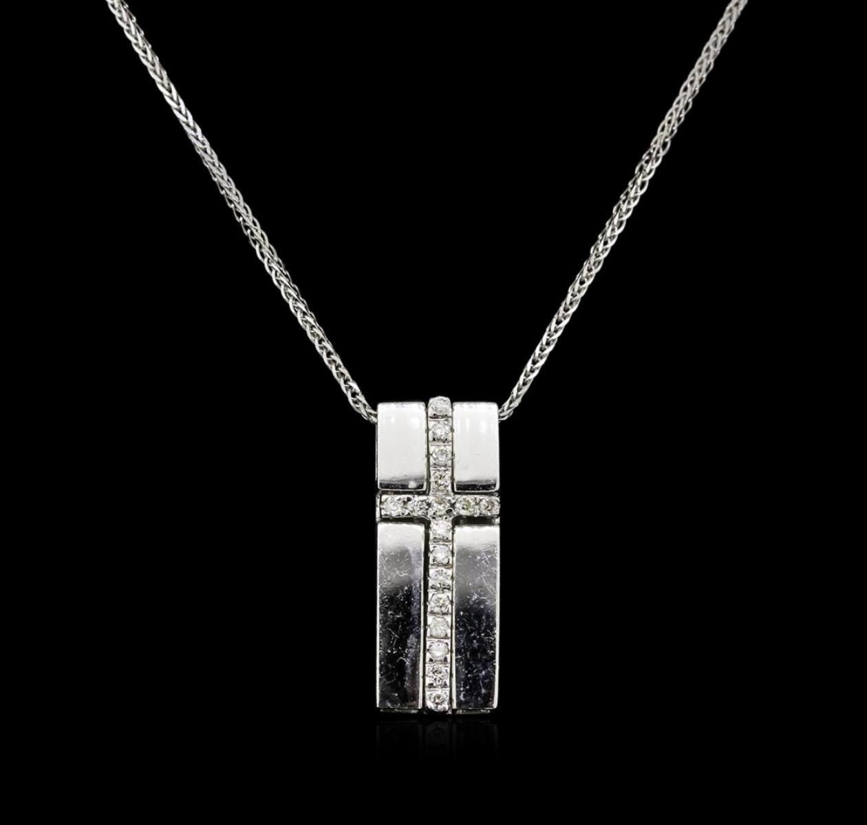 One pendant with chain featuring: 14KT white gold weighing 4.90 grams containing round diamonds with a total weight of 0.25ct.