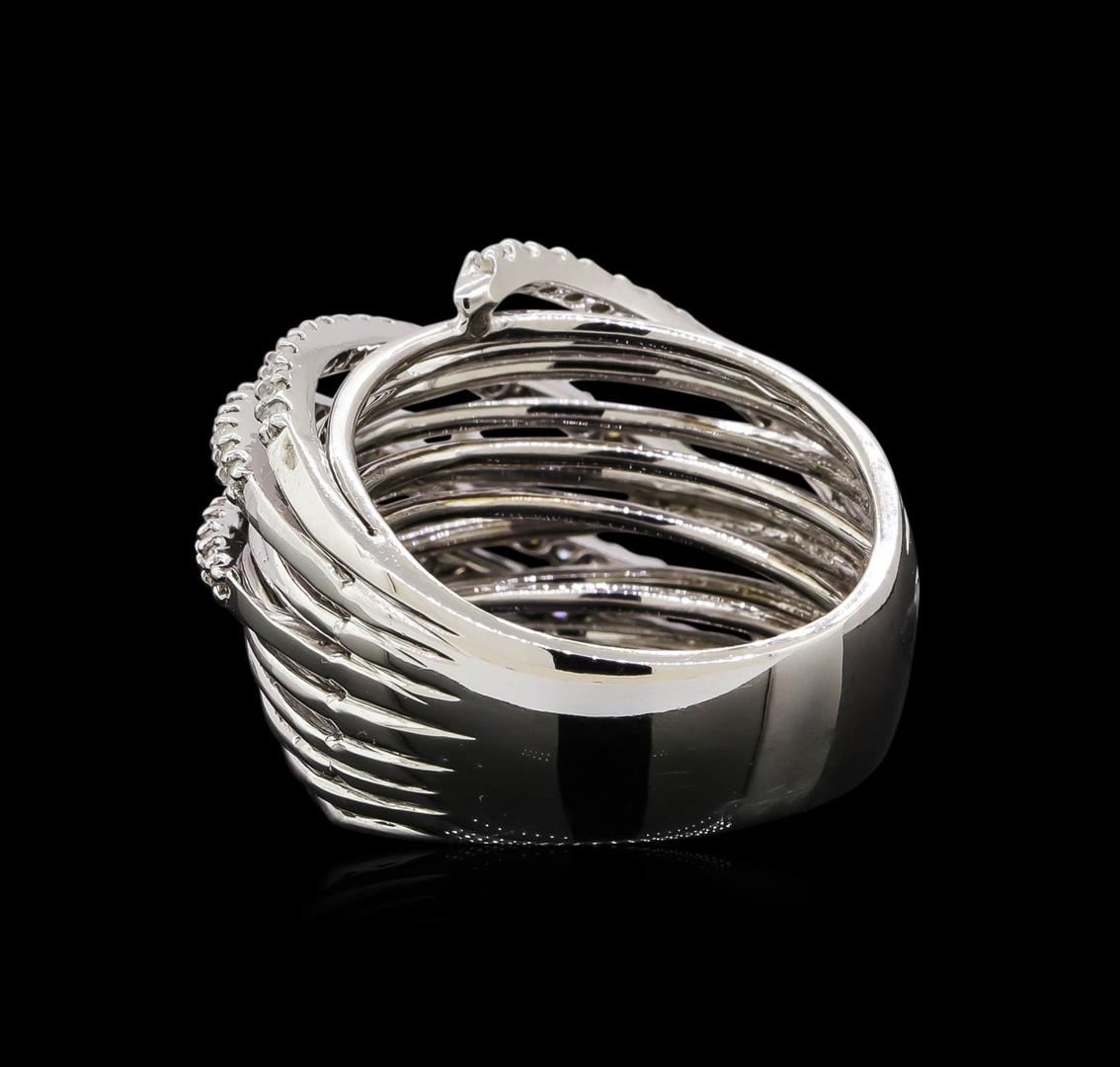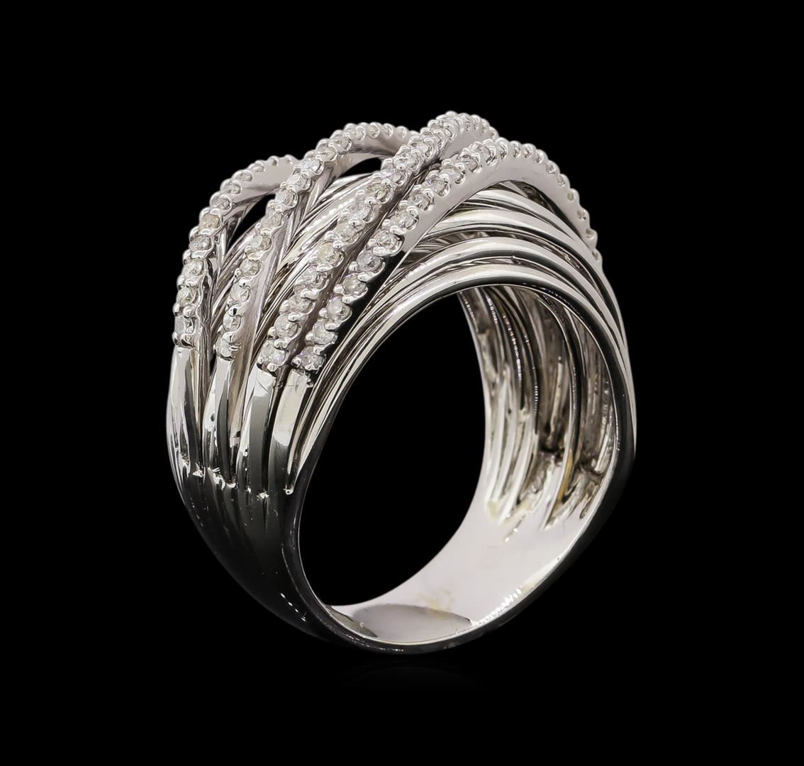 One electronically tested 14KT white gold ladies combination cast & assembled diamond ring with a bright polish finish. Identified with markings of "K14". Condition is new. Containing: Eighty-Eight prong set round brilliant cut diamonds, measuring 1.00 - 1.00 x 0.60mm (depth est.) approximate total weight of 88 Stones = 0.32ct. Clarity: I-1 to I-3. Color: I - J, Cut is Good. All diamonds are graded in the mounting, unless otherwise stated. Total Weight of Diamonds 0.32ct. Total Weight of Ring 10.60 grams. GGL Appraised.