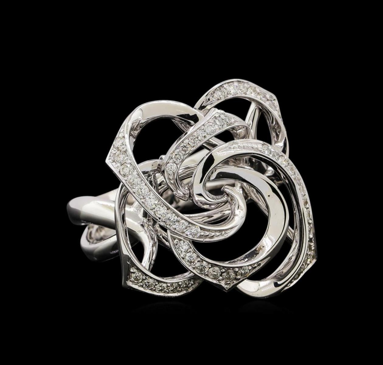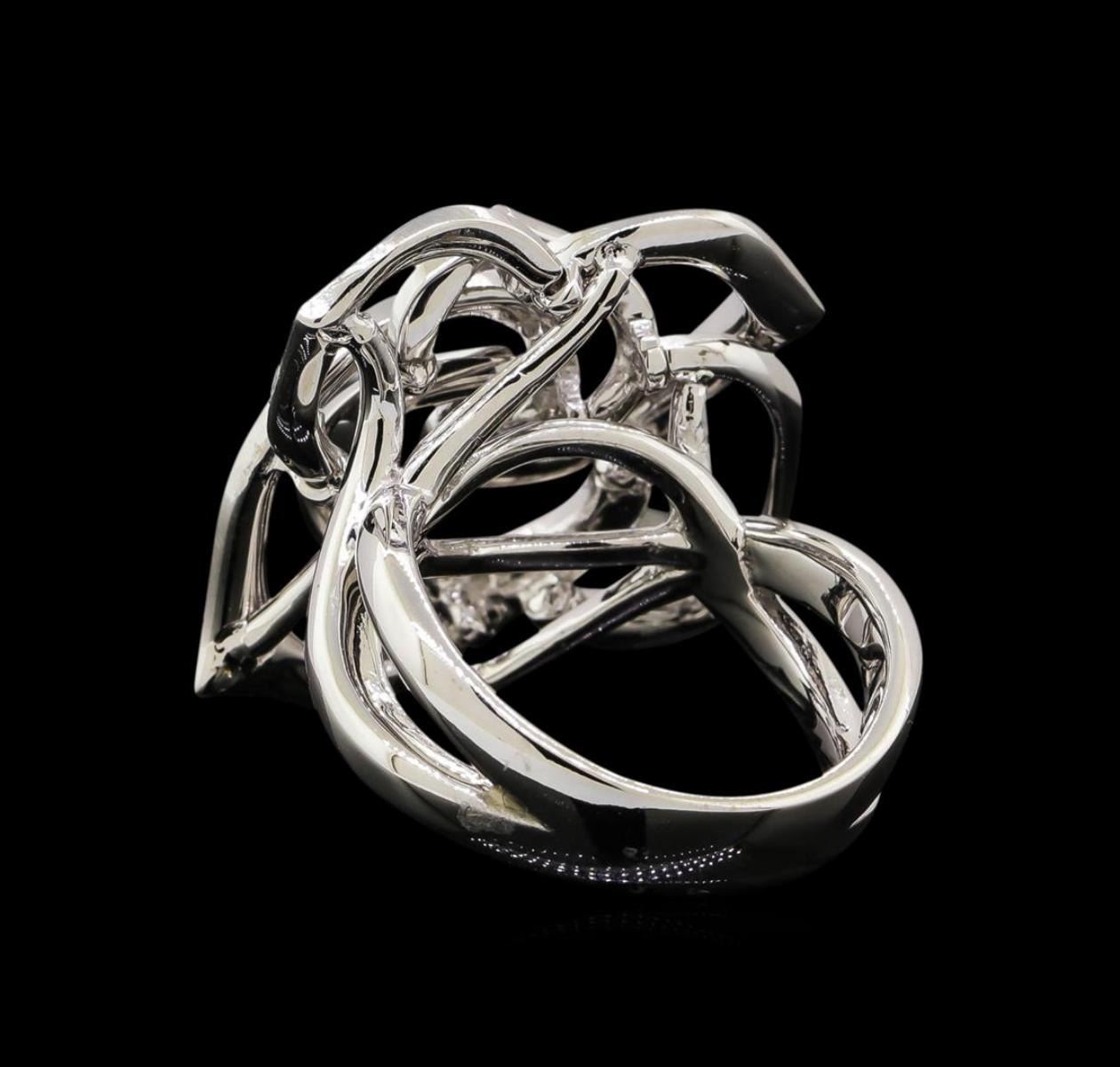 One electronically tested 14KT white gold ladies combination cast & assembled diamond ring with a bright polish finish. Identified with markings of "585". Condition is new. Containing: Fifty prong set round brilliant cut diamonds, measuring 1.30 - 1.30 x 0.78mm (depth est.) approximate total weight of 50 Stones = 0.40ct. Clarity: SI-1 to I-1. Color: H - I, Cut is Good. All diamonds are graded in the mounting, unless otherwise stated. Total Weight of Diamonds 0.40ct. Total Weight of Ring 10.70 grams. GGL Appraised.