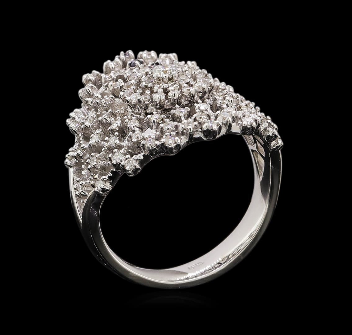 One electronically tested 14KT white gold ladies combination cast & assembled diamond ring with a bright polish finish. Identified with markings of "585". Condition is new. Containing: One prong set round brilliant cut diamond, measuring 2.50 - 2.50 x 1.50mm (depth est.) approximate weight of 0.06ct. Clarity: SI-2. Color: I, Cut is Good. Eighty-Eight prong set round brilliant cut diamonds, measuring 1.10 - 1.10 x 0.66mm (depth est.) approximate total weight of 88 Stones = 0.42ct. Clarity: SI-2 to I-1. Color: H - I, Cut is Good. All diamonds are graded in the mounting, unless otherwise stated. Total Weight of Diamonds 0.48ct. Total Weight of Ring 5.70 grams. GGL Appraised.