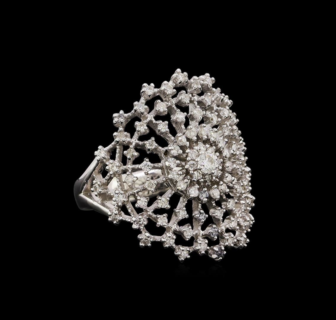 One electronically tested 14KT white gold ladies combination cast & assembled diamond ring with a bright polish finish. Identified with markings of "585". Condition is new. Containing: One prong set round brilliant cut diamond, measuring 2.50 - 2.50 x 1.50mm (depth est.) approximate weight of 0.06ct. Clarity: SI-2. Color: I, Cut is Good. Eighty-Eight prong set round brilliant cut diamonds, measuring 1.10 - 1.10 x 0.66mm (depth est.) approximate total weight of 88 Stones = 0.42ct. Clarity: SI-2 to I-1. Color: H - I, Cut is Good. All diamonds are graded in the mounting, unless otherwise stated. Total Weight of Diamonds 0.48ct. Total Weight of Ring 5.70 grams. GGL Appraised.