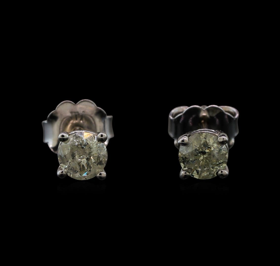 One pair electronically tested 14KT white gold ladies cast diamond stud earrings with friction posts with a bright polish finish. Identified with markings of "14K". Condition is new. Containing: Two prong set round brilliant cut diamonds, measuring 4.20 - 4.20 x 2.54mm (depth est.) approximate total weight of 2 Stones = 0.55ct. Clarity: I-3 to I-3. Color: K, Cut is Good. Diamonds are graded in the mounting, unless otherwise stated. Total Weight of Diamonds 0.55ct. Total Weight of Stud Earrings 0.70 grams. GGL Appraised at $725.00.