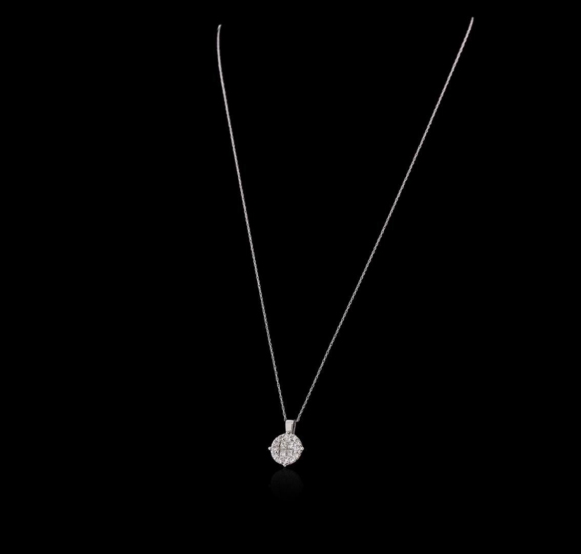 One pendant with chain featuring: 14KT white gold weighing 2.5 grams containing diamonds weighing a total of 0.61ct.