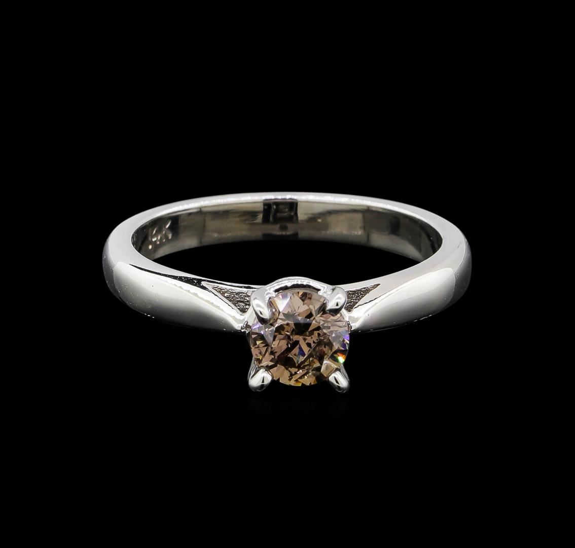One electronically tested 14KT white gold ladies cast diamond solitaire ring with a flat shank with rounded edges with a bright polish finish. Identified with markings of "14K". Condition is new. Containing: One prong set round brilliant cut diamond, measuring 5.45 - 5.45 x 3.27mm (depth est.) exact weight 0.67ct. Clarity: I-1, Cut is Good. Diamonds are graded in the mounting, unless otherwise stated. Total Weight of Diamonds 0.67ct. Total Weight of Solitaire Ring 3.60 grams. GGL Appraised.