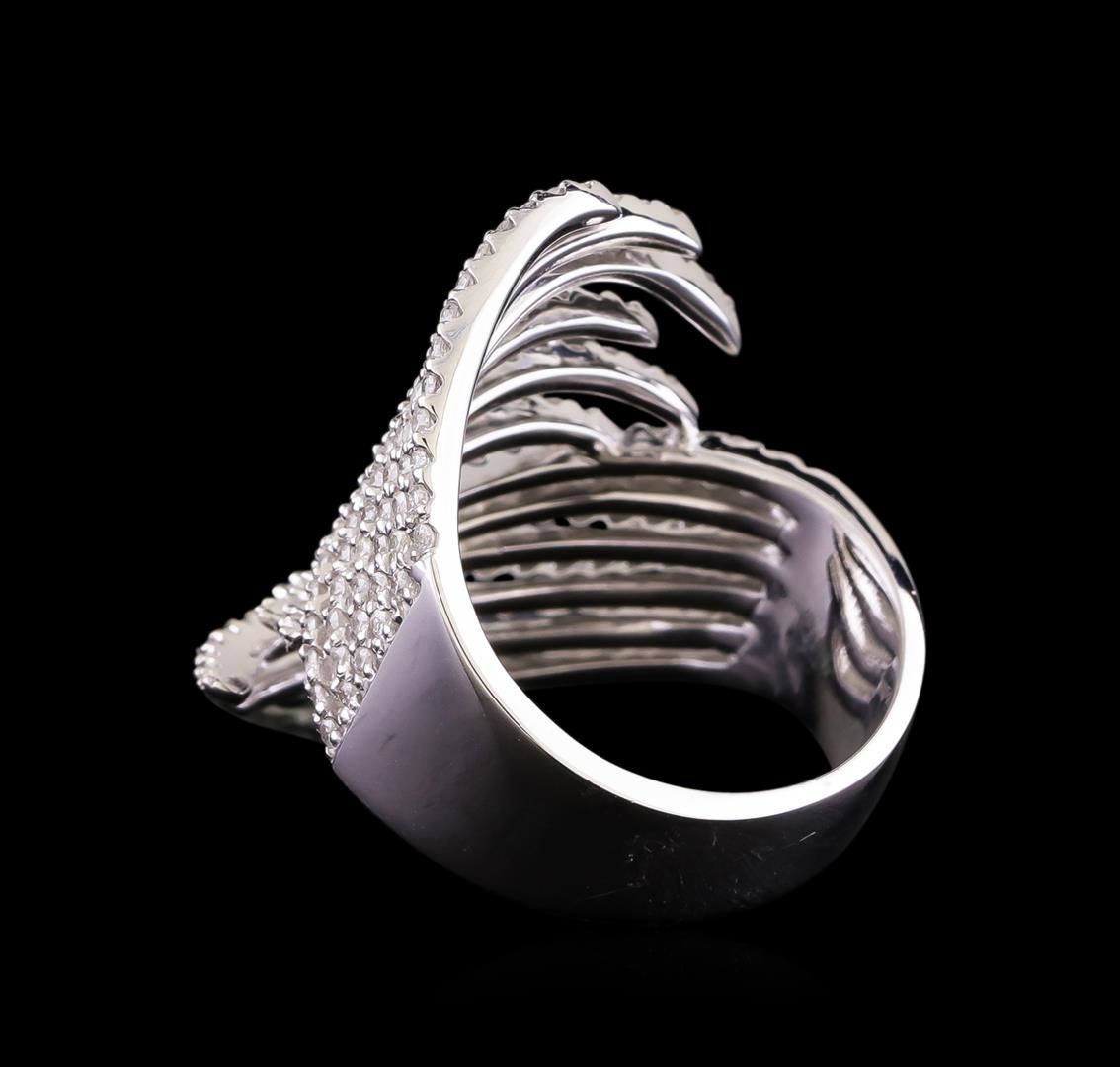 One electronically tested 14KT white gold ladies cast diamond ring with a bright polish finish. Identified with markings of "585". Condition is new. Containing: One Hundred Ninety prong set round brilliant cut diamonds, measuring 1.00 - 1.00 x 0.60mm (depth est.) approximate total weight of 190 Stones = 0.68ct. Clarity: SI-2 to I-1. Color: I - J, Cut is Good. All diamonds are graded in the mounting, unless otherwise stated. Total Weight of Diamonds 0.68ct. Total Weight of Ring 9.20 grams. GGL Appraised.