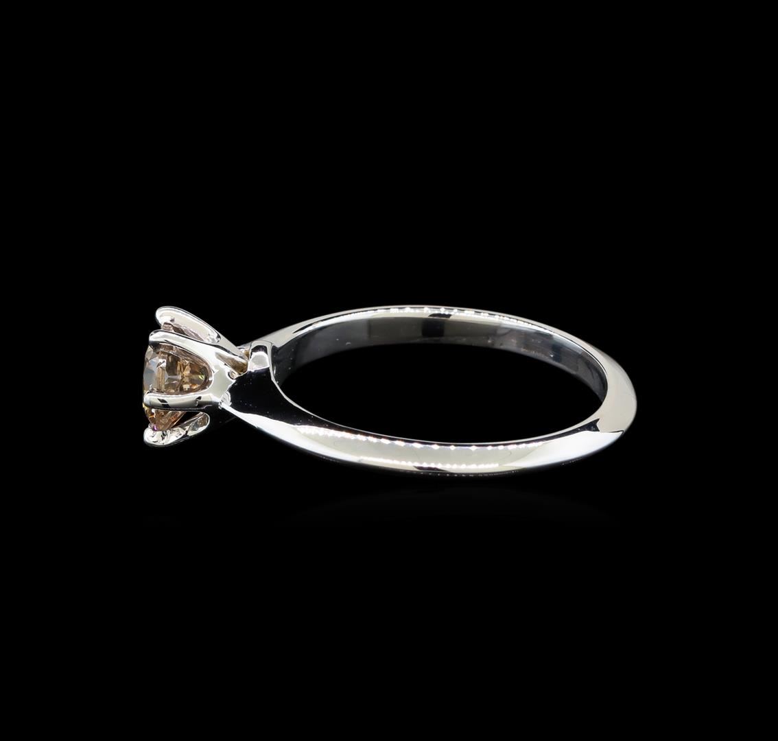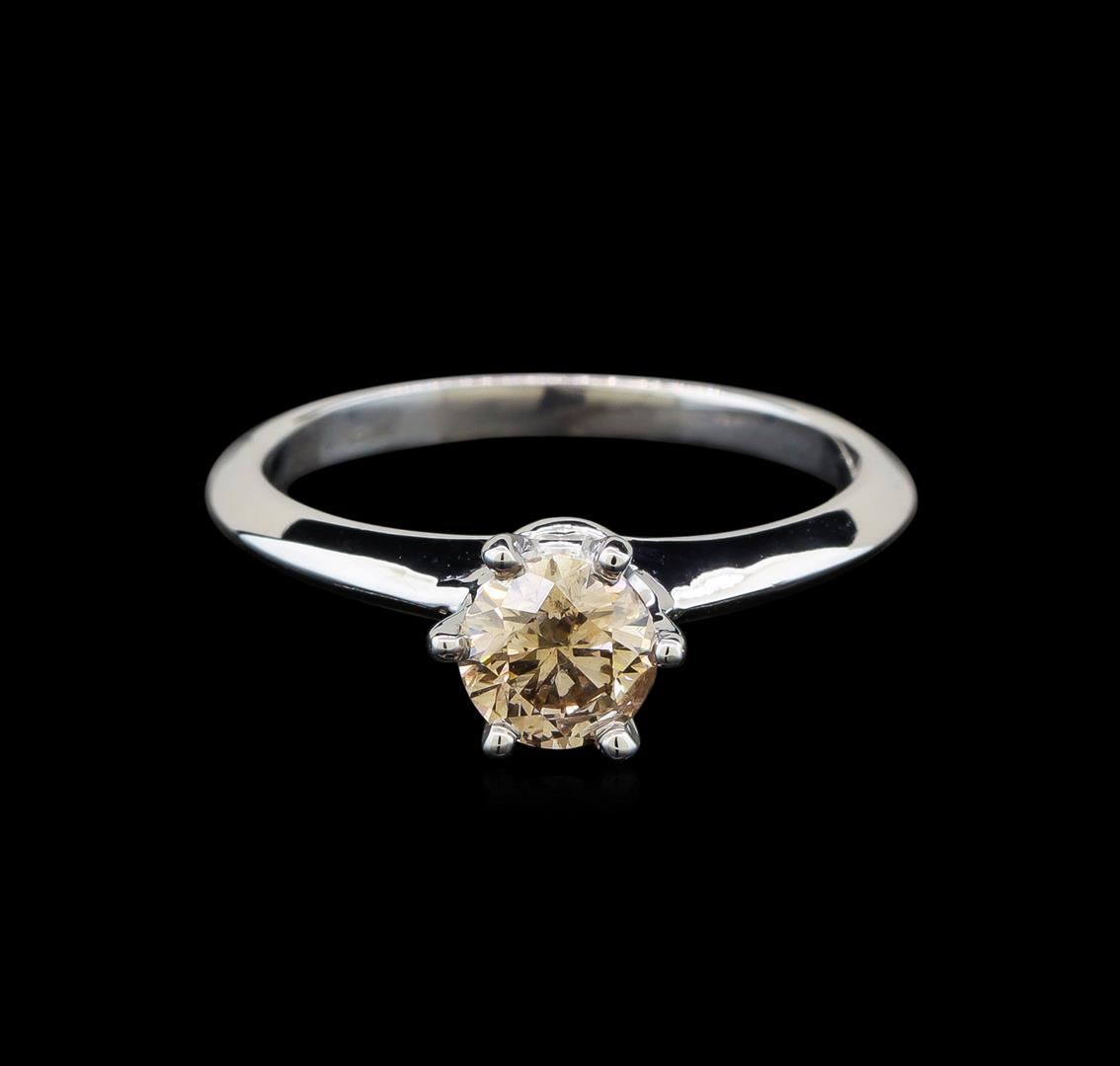 One electronically tested 14KT white gold ladies cast diamond solitaire ring with a knife edge shank with a bright polish finish. Identified with markings of "14K". Condition is new. Containing: One prong set round brilliant cut diamond, measuring 5.50 - 5.50 x 3.30mm (depth est.) exact weight 0.70ct. Clarity: I-1, Cut is Good. Diamonds are graded in the mounting, unless otherwise stated. Total Weight of Diamonds 0.70ct. Total Weight of Solitaire Ring 2.70 grams. GGL Appraised.