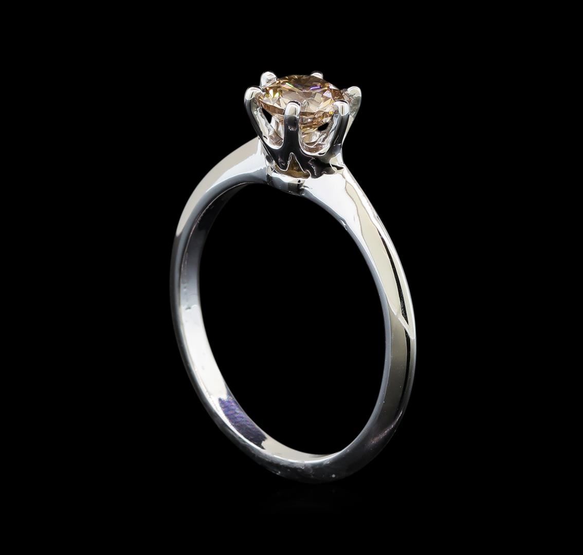 One electronically tested 14KT white gold ladies cast diamond solitaire ring with a knife edge shank with a bright polish finish. Identified with markings of "14K". Condition is new. Containing: One prong set round brilliant cut diamond, measuring 5.50 - 5.50 x 3.30mm (depth est.) exact weight 0.70 ct. Clarity: I-1, Cut is Good. Diamonds are graded in the mounting, unless otherwise stated. Total Weight of Diamonds 0.70 ct. Total Weight of Solitaire Ring 2.70 grams. GGL Appraised.