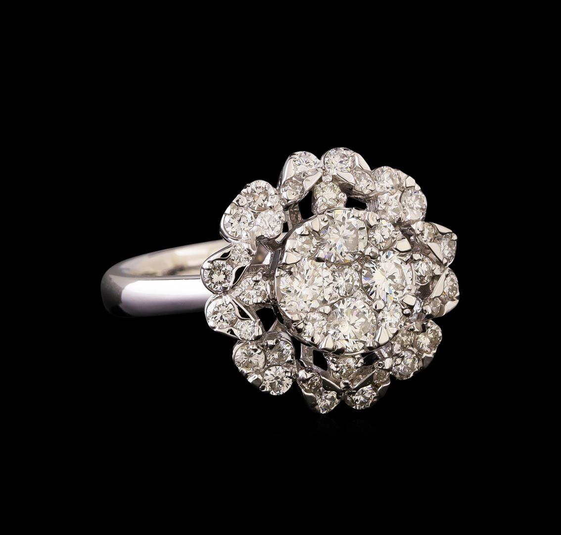 One electronically tested 14KT white gold ladies combination cast & assembled diamond ring with a bright polish finish. Identified with markings of "14K". Condition is new. Containing: Four prong set round brilliant cut diamonds, measuring 3.10 - 3.10 x 1.86mm (depth est.) approximate total weight of 4 Stones = 0.44ct. Clarity: SI-2. Color: H - I, Cut is Good. Thirty-Seven prong set round brilliant cut diamonds, measuring 1.80 - 1.30 x 0.93mm (depth est.) approximate total weight of 37 Stones = 0.40ct. Clarity: SI-2 to I-1. Color: I - J, Cut is Good. All diamonds are graded in the mounting, unless otherwise stated. Total Weight of Diamonds 0.84ct. Total Weight of Ring 5.80 grams. GGL Appraised.