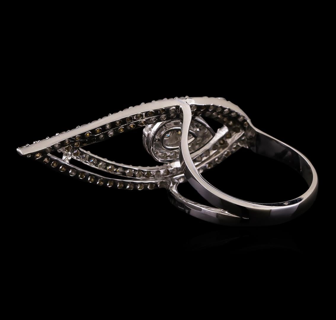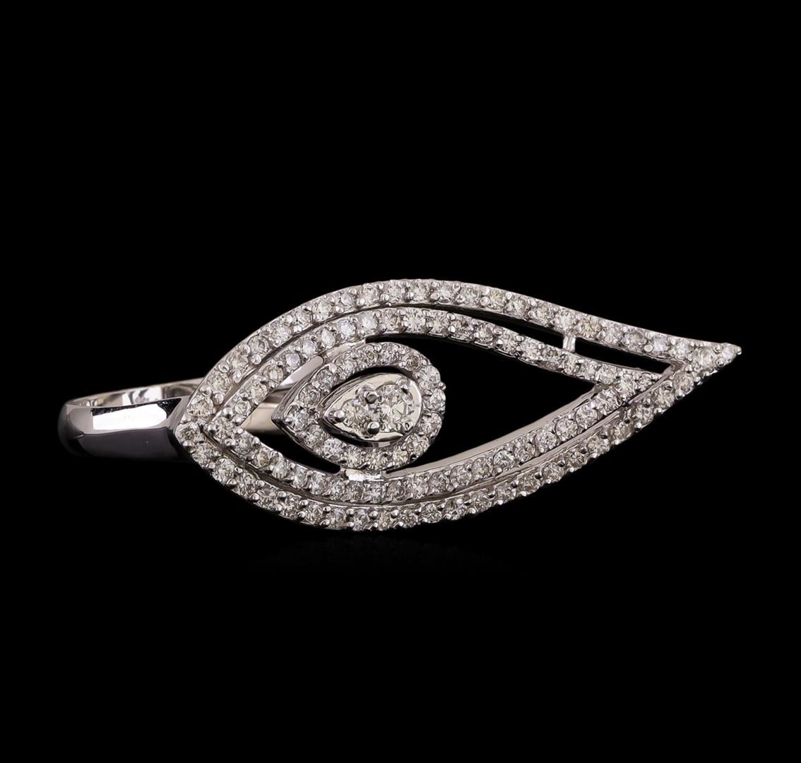 One electronically tested 14KT white gold ladies cast diamond ring with a bright polish finish. Identified with markings of "K14". Condition is new. Containing: One prong set round brilliant cut diamond, measuring 2.80 - 2.80 x 1.68mm (depth est.) approximate weight of 0.08ct. Clarity: I-1. Color: I, Cut is Good. One Hundred Twelve prong set round brilliant cut diamonds, measuring 1.50 - 1.10 x 0.78mm (depth est.) approximate total weight of 112 Stones = 0.90 ct. Clarity: I-1 to I-2. Color: I - J, Cut is Good. All diamonds are graded in the mounting, unless otherwise stated. Total Weight of Diamonds 0.98ct. Total Weight of Ring 5.80 grams. GGL Appraised.