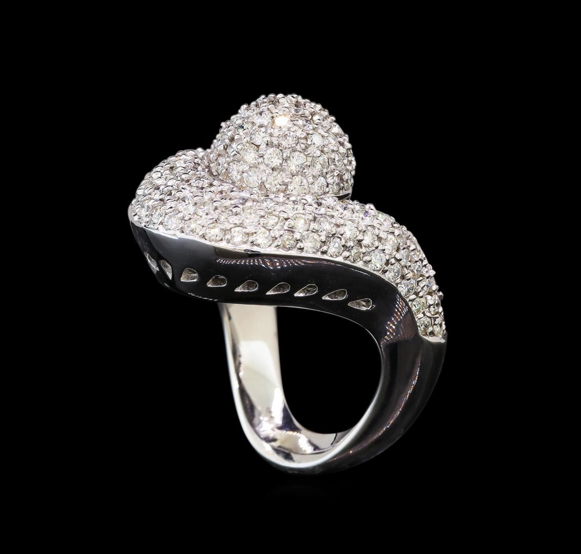 One electronically tested 14KT white gold ladies cast diamond ring with a bright polish finish. Identified with markings of "14K". Condition is new. Containing: One Hundred Thirty-Two prong set round brilliant cut diamonds, measuring 1.30 - 1.30 x 0.78mm (depth est.) approximate total weight of 132 Stones = 1.06ct. Clarity: SI-2 to I-1. Color: I - J, Cut is Good. All diamonds are graded in the mounting, unless otherwise stated. Total Weight of Diamonds 1.06ct. Total Weight of Ring 15.80 grams. GGL Appraised.