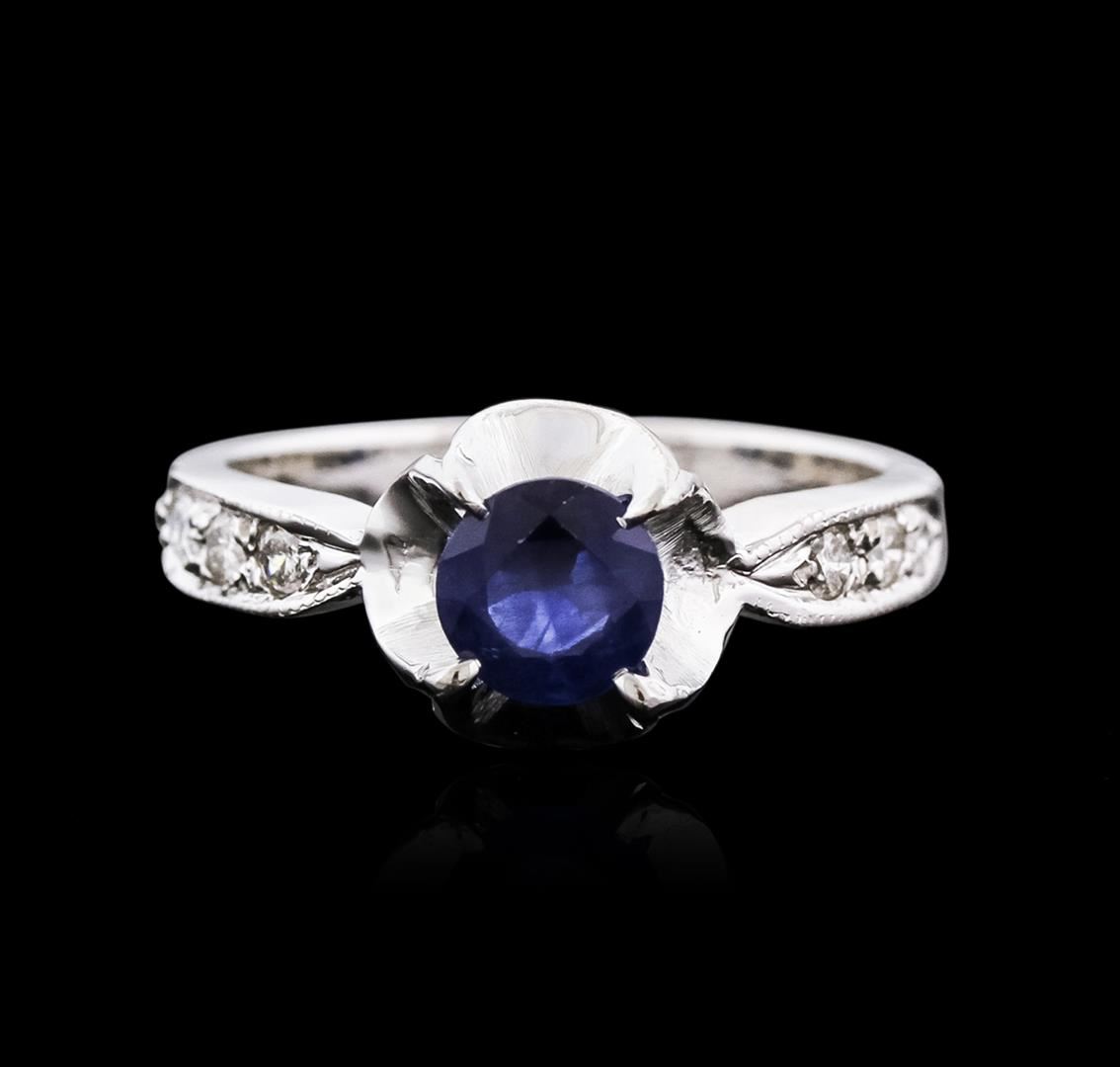 14KT White Gold 1.09 ctw Sapphire and Diamond Ring