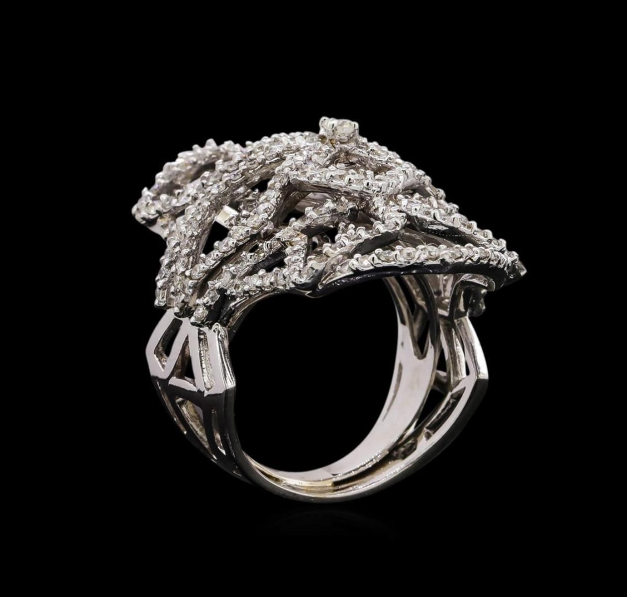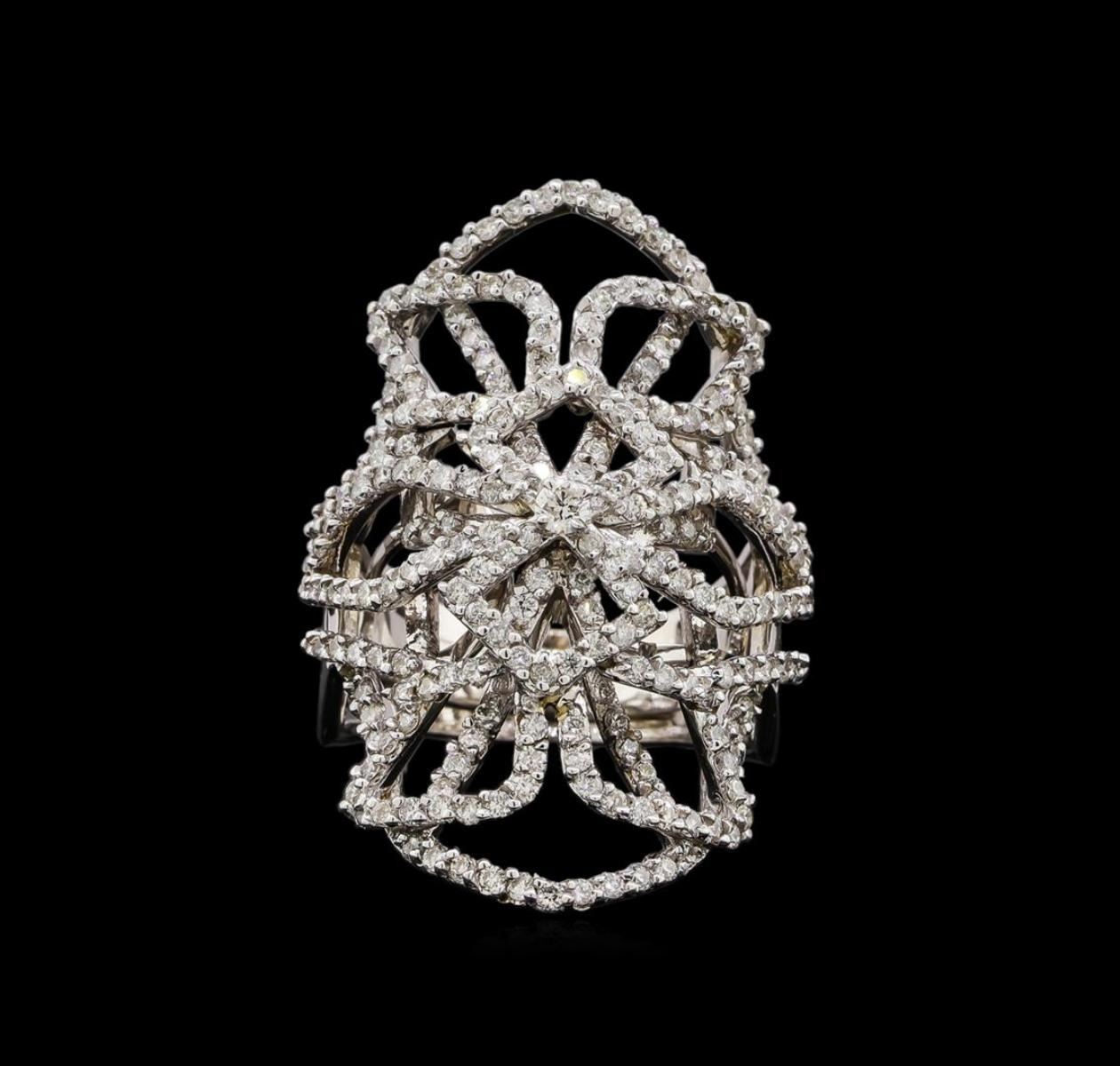 One electronically tested 14KT white gold ladies cast diamond ring with a bright polish finish. Identified with markings of "14K". Condition is new. Containing: Two Hundred Twenty-Four prong set round brilliant cut diamonds, measuring 2.10 - 1.10 x 0.96mm (depth est.) approximate total weight of 224 Stones = 1.11ct. Clarity: I-1 to I-2. Color: H - I, Cut is Good. All diamonds are graded in the mounting, unless otherwise stated. Total Weight of Diamonds 1.11ct. Total Weight of Ring 11.20 grams. GGL Appraised.