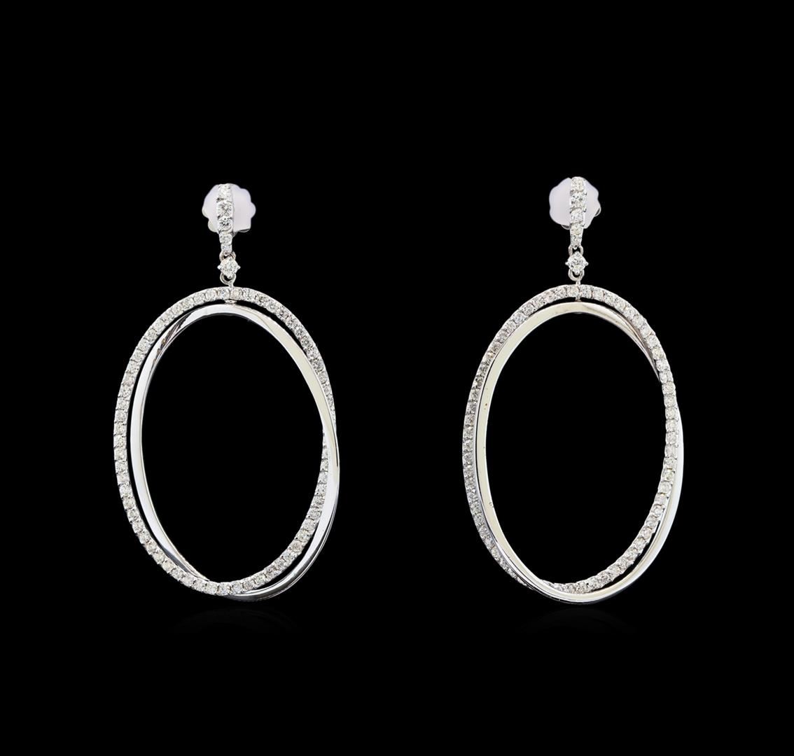 One pair electronically tested 14KT white gold ladies cast diamond earrings with friction posts with a bright polish finish. Identified with markings of "585". Condition is new. Containing: One Hundred Sixty prong set round brilliant cut diamonds, measuring 1.80 - 1.30 x 0.93mm (depth est.) approximate total weight of 160 Stones = 1.16ct. Clarity: SI-1 to I-1. Color: H - I, Cut is Good. All diamonds are graded in the mounting, unless otherwise stated. Total Weight of Diamonds 1.16ct. Total Weight of Earrings 9.40 grams. GGL Appraised.