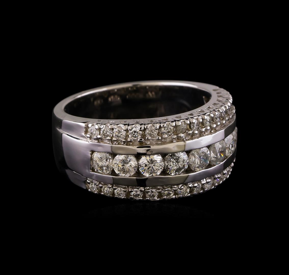 One electronically tested 14KT white gold ladies combination cast & assembled diamond ring with a bright polish finish. Identified with markings of "14K". Condition is new. Containing: Nine channel set round brilliant cut diamonds, measuring 3.00 - 3.00 x 1.80mm (depth est.) approximate total weight of 9 Stones = 0.89ct. Clarity: I-1 to I-2. Color: H - I, Cut is Good. Thirty prong set round brilliant cut diamonds, measuring 1.50 - 1.50 x 0.90mm (depth est.) approximate total weight of 30 Stones = 0.37ct. Clarity: SI-2 to I-1. Color: I - J, Cut is Good. All diamonds are graded in the mounting, unless otherwise stated. Total Weight of Diamonds 1.26ct. Total Weight of Ring 9.10 grams. GGL Appraised.