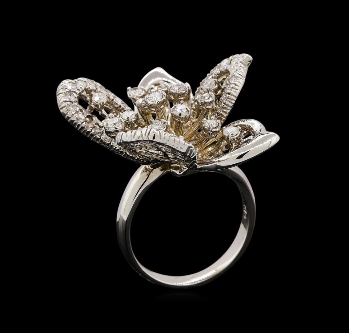 One electronically tested 14KT white gold ladies cast diamond ring with a bright polish finish. Identified with markings of "14K". Condition is new. Containing: Sixty-Six prong set round brilliant cut diamonds, measuring 2.00 - 1.50 x 1.05mm (depth est.) approximate total weight of 66 Stones = 1.29ct. Clarity: SI-1 to I-1. Color: I - J. All diamonds are graded in the mounting, unless otherwise stated. Total Weight of Diamonds 1.29ct. Total Weight of Ring 11.40 grams. GGL Appraised.