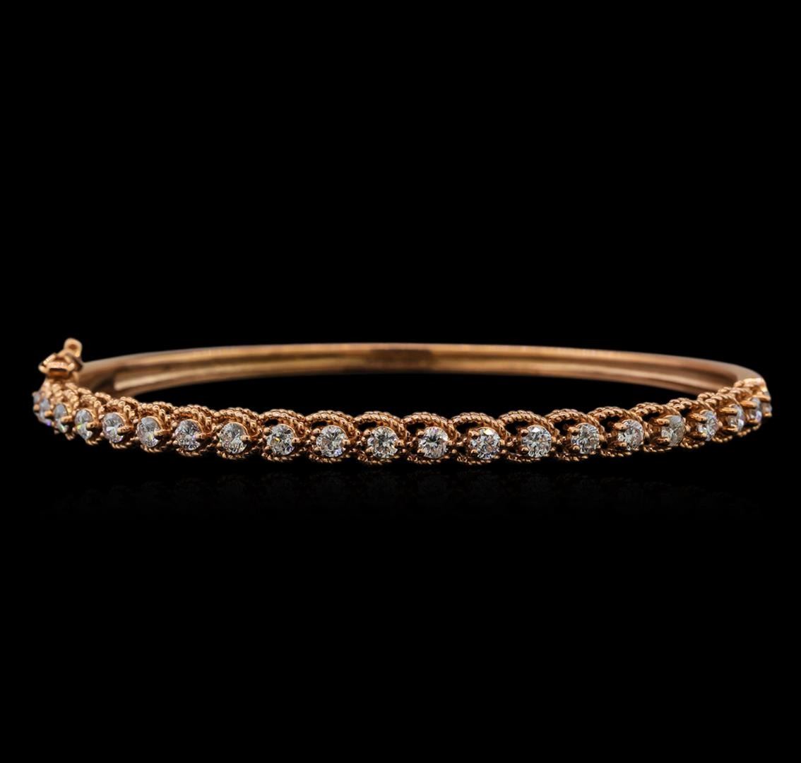 One electronically tested 14KT white gold ladies cast diamond bangle bracelet with a hidden box clasp with safety closer with a bright polish finish. Identified with markings of "14K". Condition is new. Containing: Twenty-One prong set round brilliant cut diamonds, measuring 2.50 - 2.50 x 1.50mm (depth est.) approximate total weight of 21 Stones = 1.33ct. Clarity: SI-1 to SI-2. Color: G - H, Cut is Good. All diamonds are graded in the mounting, unless otherwise stated. Total Weight of Diamonds 1.33ct. Total Weight of Bangle Bracelet 11.10 grams. GGL Appraised.