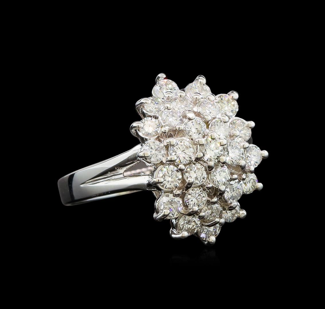 One electronically tested 14KT white gold ladies cast diamond ring with a bright polish finish. Identified with markings of "14K". Condition is new. Containing: Twenty-Seven prong set round brilliant cut diamonds, measuring 2.90 - 2.80 x 1.71mm (depth est.) approximate total weight of 27 Stones = 1.47ct. Clarity: SI-1 to SI-2. Color: G - H, Cut is Very Good. All diamonds are graded in the mounting, unless otherwise stated. Total Weight of Diamonds 1.47ct. Total Weight of Ring 6.20 grams. GGL Appraised at $4,130.00.