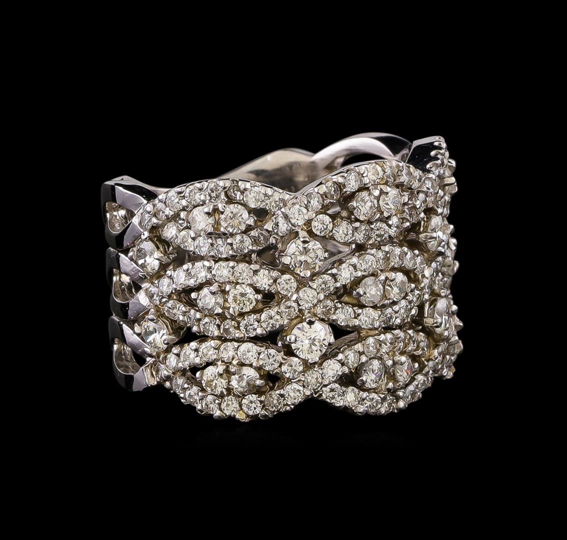 One electronically tested 14KT white gold ladies combination cast & assembled diamond ring with a split shank with a bright polish finish. Identified with markings of 14K. Condition is new. Containing: One Hundred Sixty-Four prong set round brilliant cut diamonds, measuring 2.00 - 1.20 x 0.96mm (depth est.) approximate total weight of 164 Stones = 1.50ct. Clarity: SI-1 to I-1. Color: I - J, Cut is Good. All diamonds are graded in the mounting, unless otherwise stated. Total Weight of Diamonds 1.50ct. Total Weight of Ring 10.30 grams. GGL Appraised at $6,150.00.