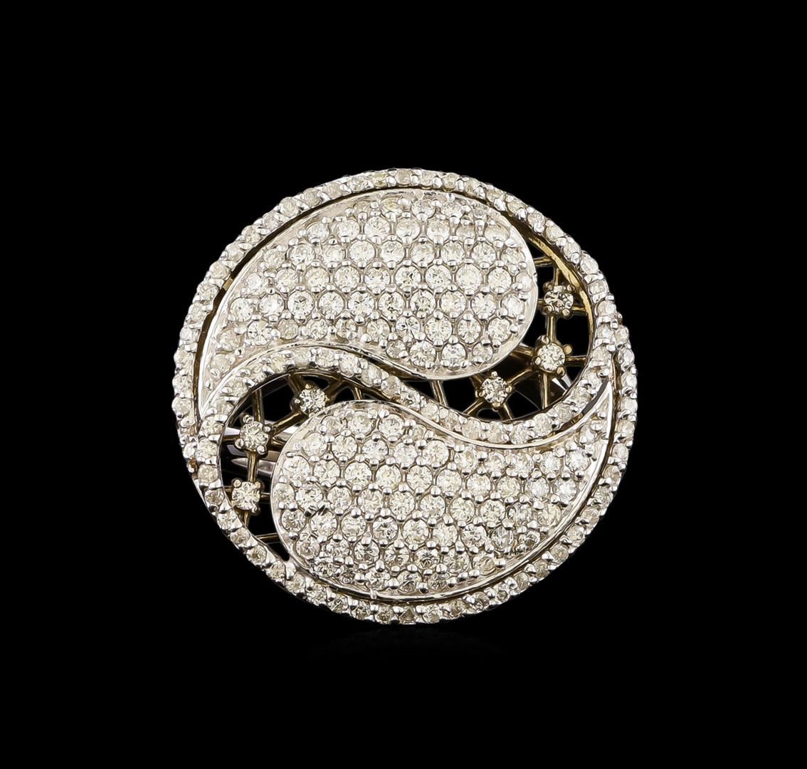 One electronically tested 14KT white gold ladies combination cast & die struck diamond ring with a split shoulder shank with a bright polish finish. Identified with markings of "K14". Condition is new. Containing: One Hundred Ninety-Six prong set round brilliant cut diamonds, measuring 1.30 - 1.30 x 0.78mm (depth est.) approximate total weight of 196 Stones = 1.57ct. Clarity: SI-1 to SI-2. Color: I - J, Cut is Good. All diamonds are graded in the mounting, unless otherwise stated. Total Weight of Diamonds 1.57ct. Total Weight of Ring 10.60 grams. GGL Appraised.
