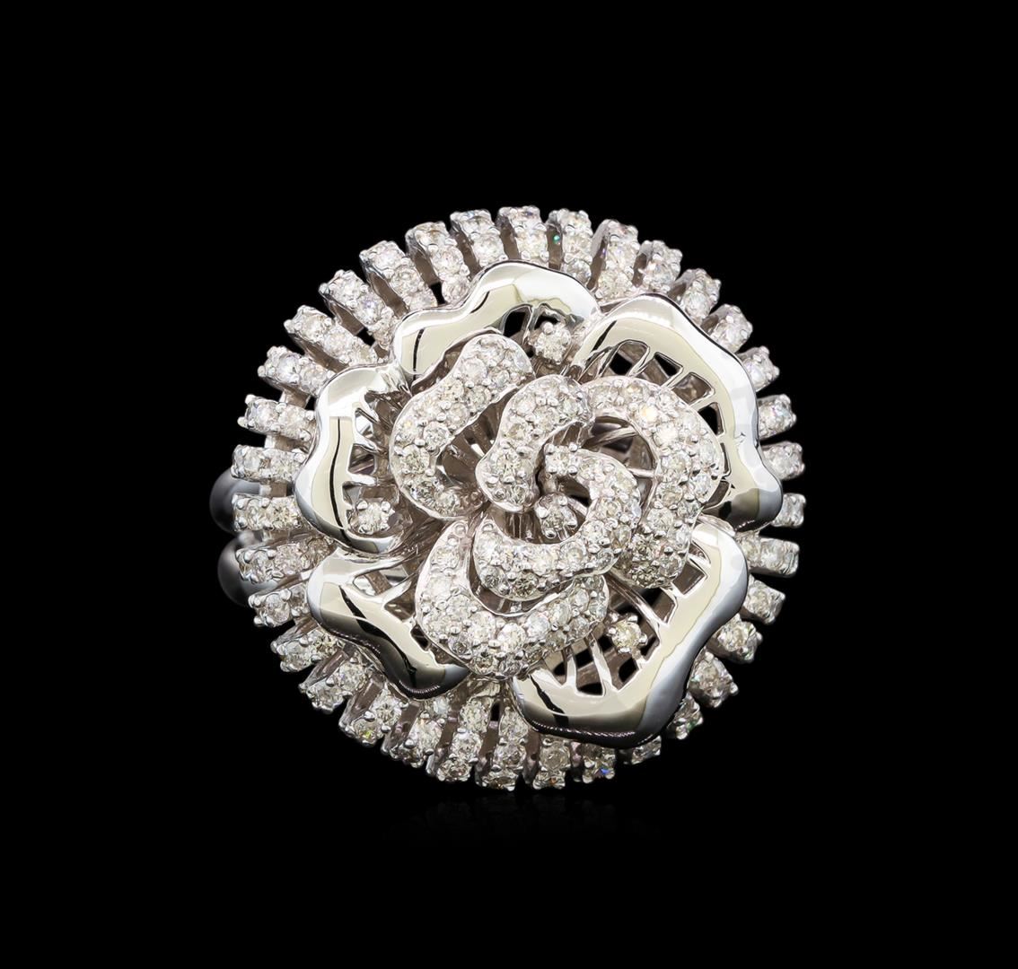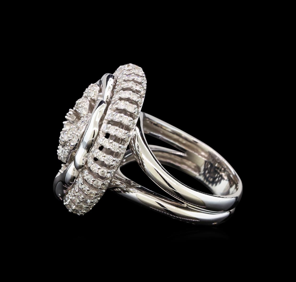 One electronically tested 14KT white gold ladies cast diamond ring with a bright polish finish. Identified with markings of "14K". Condition is new. Containing: One Hundred Ninety-Nine prong set round brilliant cut diamonds, measuring 1.30 - 1.30 x 0.78mm (depth est.) approximate total weight of 199 Stones = 1.59ct. Clarity: SI-2 to I-2. Color: H - I, Cut is Good. All diamonds are graded in the mounting, unless otherwise stated. Total Weight of Diamonds 1.59ct. Total Weight of Ring 11.20 grams. GGL Appraised.
