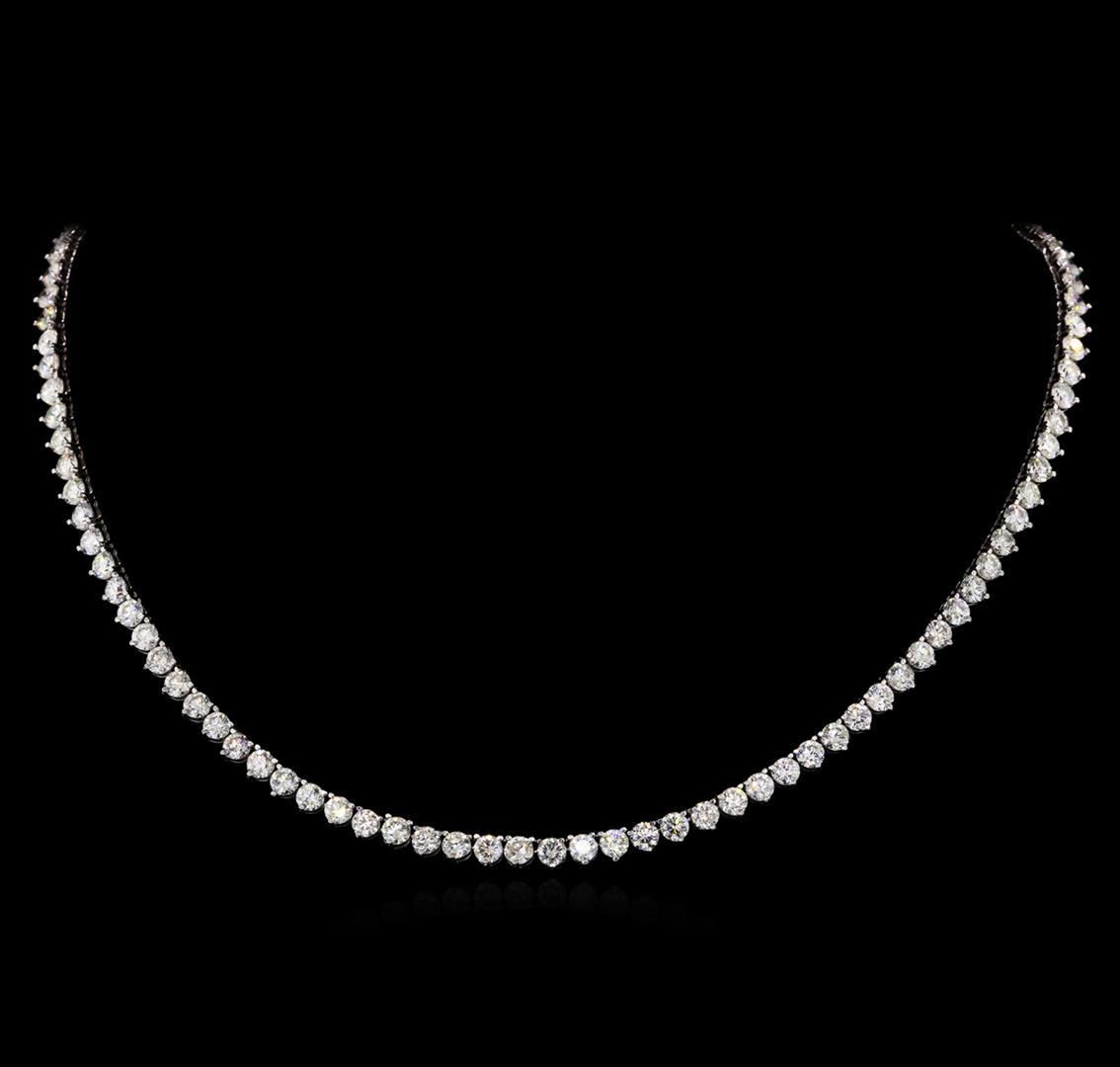 One electronically tested 14KT white gold ladies combination cast & assembled diamond necklace with a hidden box clasp with safety closer with a bright polish finish. Identified with markings of "14K". Condition is new. Containing: One Hundred Nine prong set round brilliant cut diamonds, measuring 3.70 - 3.50 x 2.16mm (depth est.) exact total weight 109 Stones = 19.68ct. Clarity: SI-2 to I-1. Color: H - J, Cut is Good. All diamonds are graded in the mounting, unless otherwise stated. Total Weight of Diamonds 19.68ct. Total Weight of Necklace 20.10 grams. GGL Appraised.
