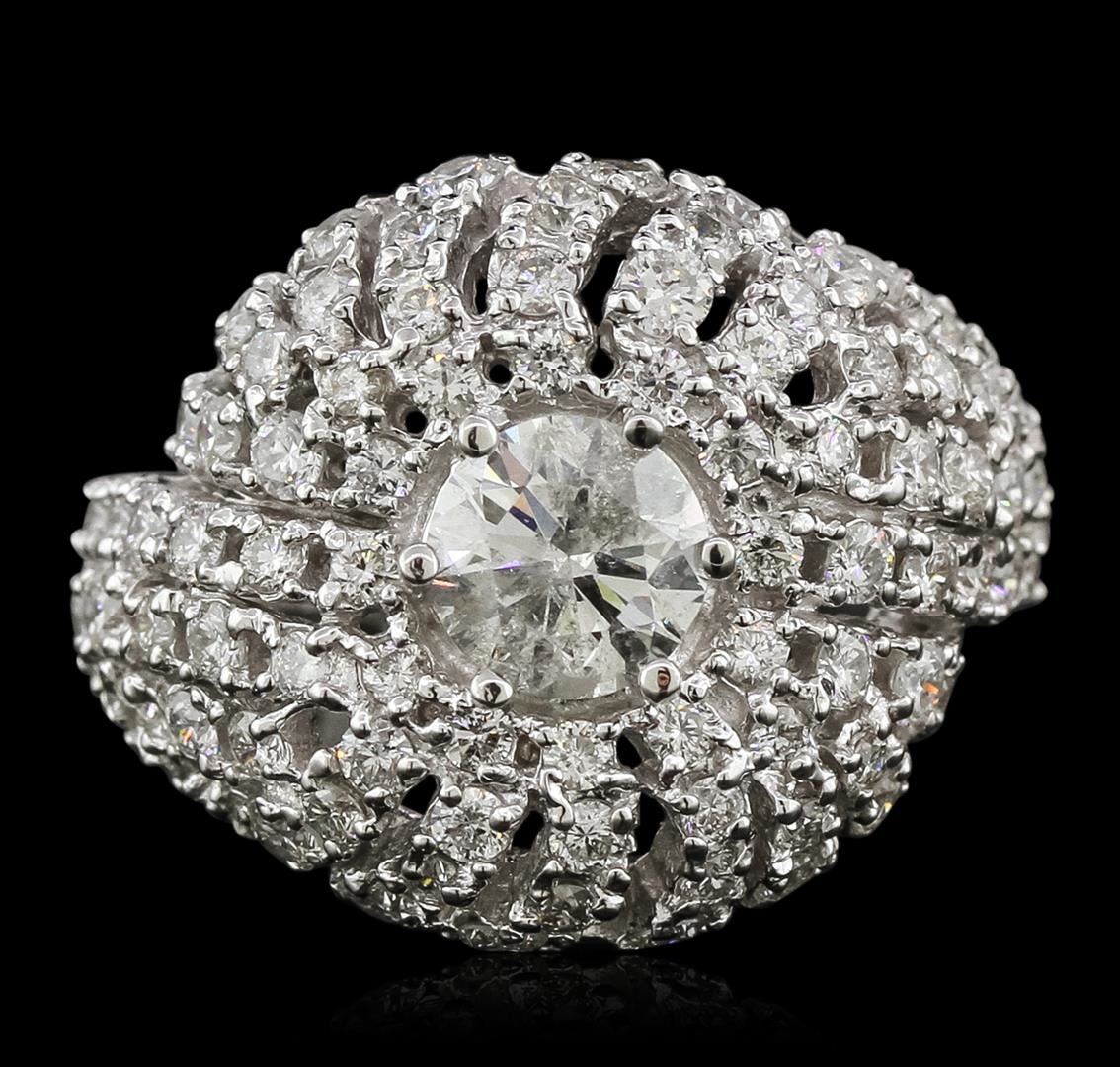 One electronically tested 14KT white gold ladies combination cast & assembled engagement ring with a flat shank with a bright polish finish. Identified with markings of "K14". Condition is new. Containing: One prong set round brilliant cut diamond, measuring 6.20 - 6.20 x 4.00mm (depth est.) approximate weight of 0.94ct. Clarity: I-2. Color: I, Cut is Good. Eighty-Six prong set round brilliant cut diamonds, measuring 1.50 - 1.50 x 0.90mm (depth est.) approximate total weight of 86 Stones = 1.06ct. Clarity: SI-1 to I-1. Color: I - J, Cut is Good. All diamonds are graded in the mounting, unless otherwise stated. Total Weight of Diamonds 2.00ct. Total Weight of Ring 8.70 grams. GGL Appraised.