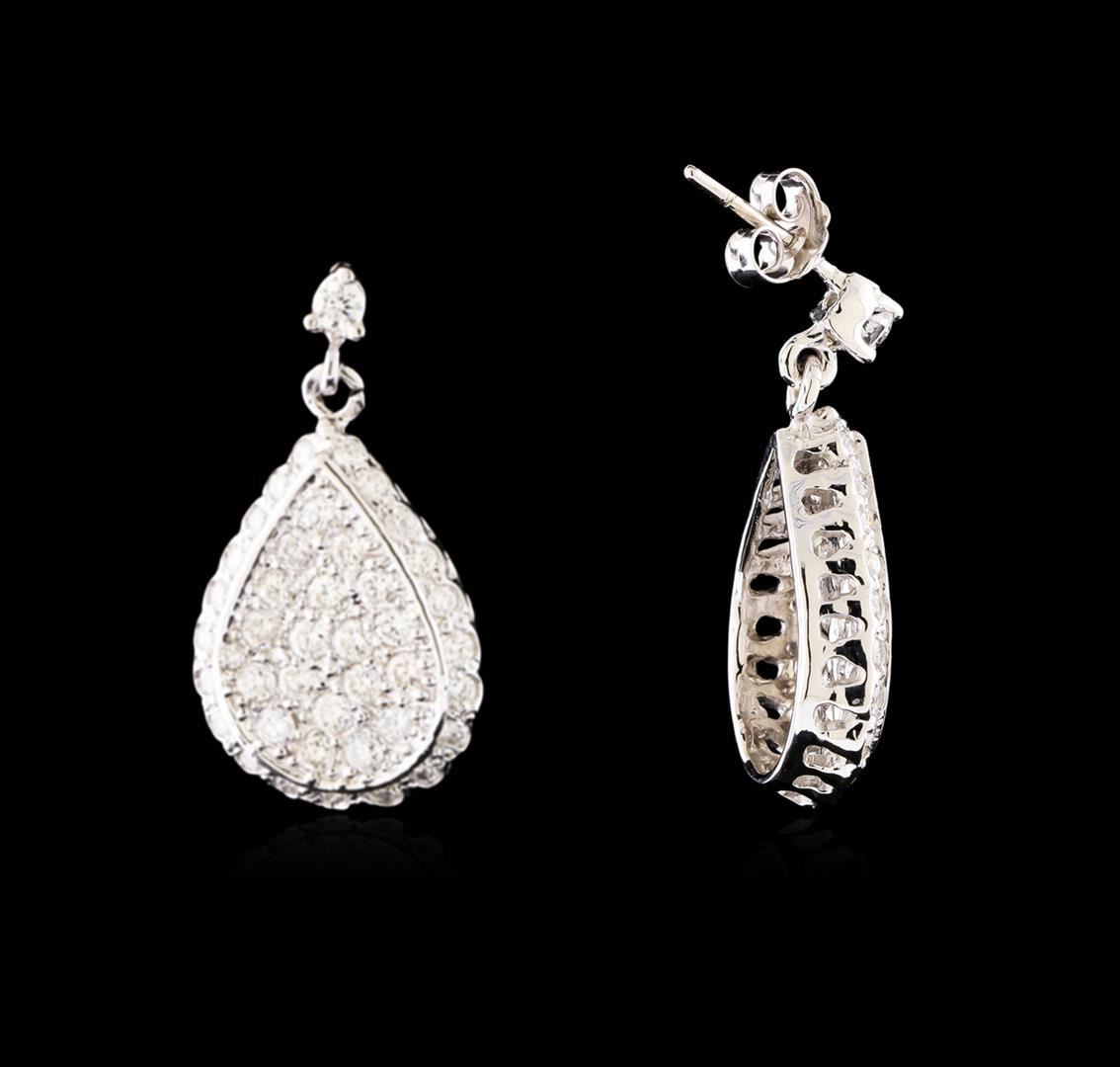 One pair electronically tested 14KT white gold ladies combination cast & assembled dangle diamond earrings with friction posts with a bright polish finish. Condition is new. Containing: Forty-Four prong set round brilliant cut diamonds, measuring 1.50 - 1.50 x 0.90mm (depth est.) approximate total weight of 44 Stones = 0.54ct. Clarity: SI-1 to I-1. Color: H - I, Cut is Good. Thirty-Eight prong set round brilliant cut diamonds, measuring 2.20 - 2.20 x 1.32mm (depth est.) approximate total weight of 38 Stones = 1.48ct. Clarity: SI-1 to I-1. Color: J - K, Cut is Good. All diamonds are graded in the mounting, unless otherwise stated. Total Weight of Diamonds 2.02ct. Total Weight of Earrings 8.40 grams. GGL Appraised.