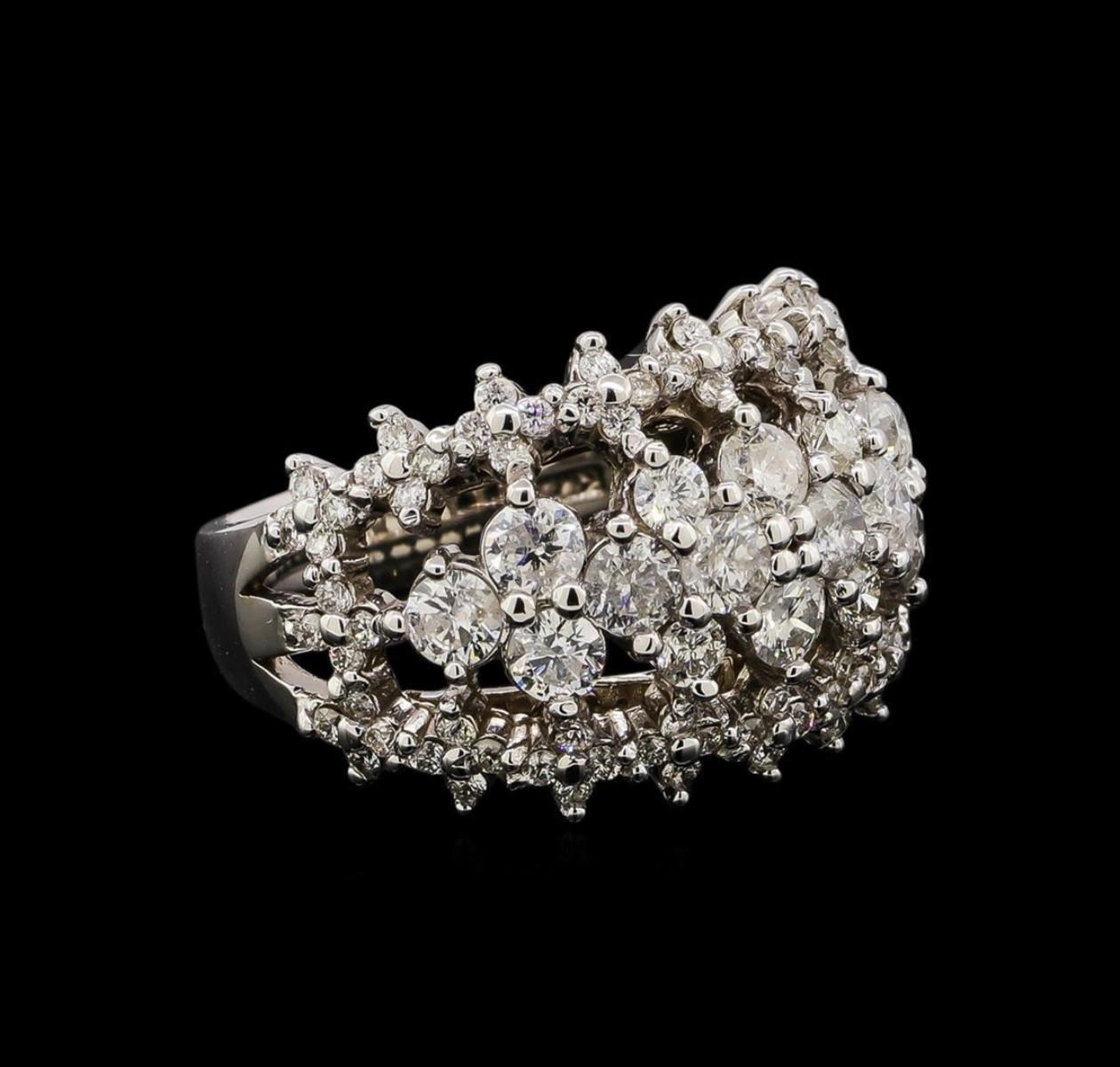 One electronically tested 14KT white gold ladies cast diamond ring with a bright polish finish. Identified with markings of "14K". Condition is new. Containing: Twelve prong set round brilliant cut diamonds, measuring 3.00 - 3.00 x 1.80mm (depth est.) approximate total weight of 12 Stones = 1.19ct. Clarity: I-1 to I-2. Color: I - J. Eighty-Four prong set round brilliant cut diamonds, measuring 2.50 - 1.30 x 1.14mm (depth est.) approximate total weight of 84 Stones = 0.90ct. Clarity: SI-2 to I-2. Color: I - J, Cut is Good. All diamonds are graded in the mounting, unless otherwise stated. Total Weight of Diamonds 2.09ct. Total Weight of Ring 10.00 grams. GGL Appraised.
