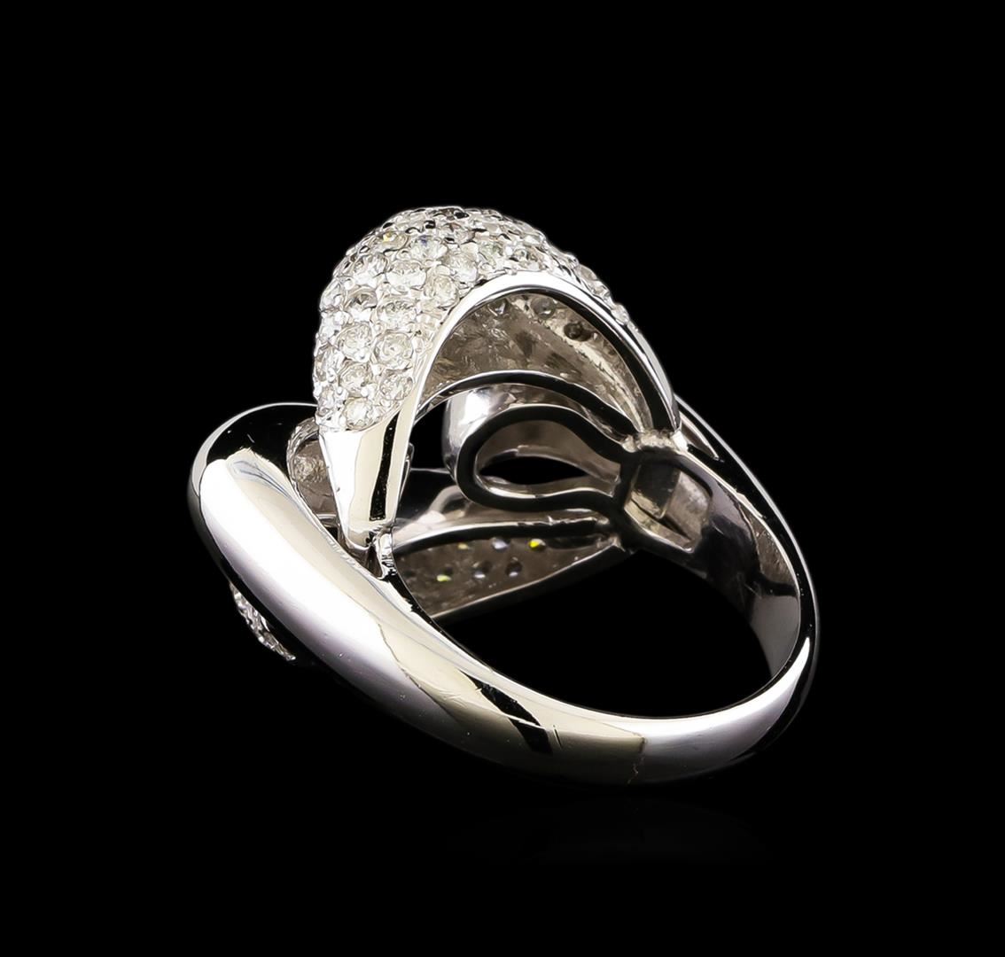One electronically tested 14KT white gold ladies combination cast & assembled diamond ring with a flat shank with rounded edges with a bright polish finish. Identified with markings of "K14". Condition is new. Containing: One Hundred Twenty-Four prong set round brilliant cut diamonds, measuring 1.70 - 1.70 x 1.02mm (depth est.) approximate total weight of 124 Stones = 2.22ct. Clarity: SI-1 to SI-2. Color: H - J, Cut is Good. All diamonds are graded in the mounting, unless otherwise stated. Total Weight of Diamonds 2.22ct. Total Weight of Ring 11.80 grams. GGL Appraised.