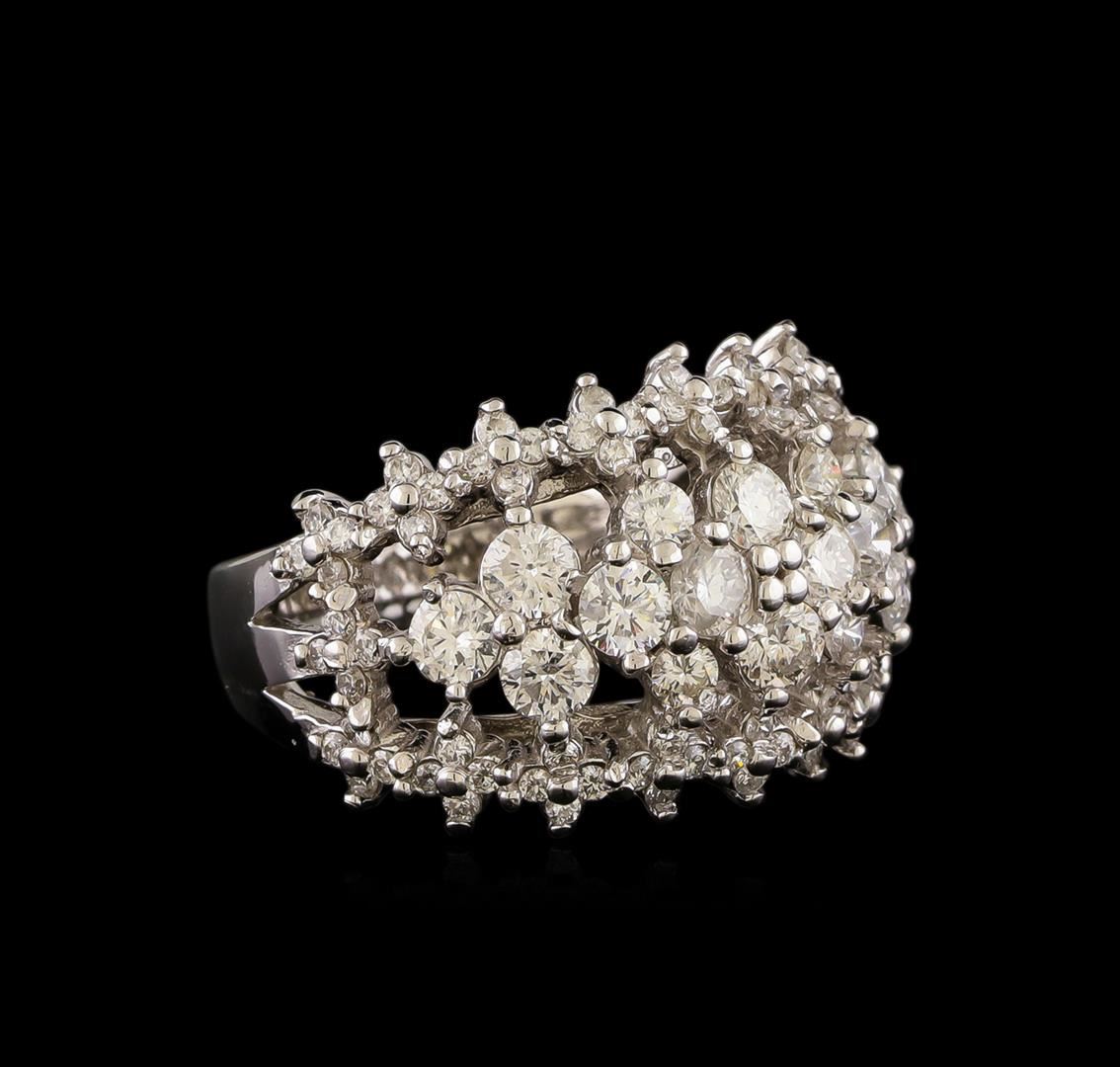 One electronically tested 14KT white gold ladies combination cast & assembled diamond ring with a bright polish finish. Identified with markings of "K14". Condition is new. Containing: Eighty prong set round brilliant cut diamonds, measuring 1.30 - 1.30 x 0.78mm (depth est.) approximate total weight of 80 Stones = 0.64ct. Clarity: I-1. Color: I - J, Cut is Good. Sixteen prong set round brilliant cut diamonds, measuring 3.50 - 2.50 x 1.80mm (depth est.) approximate total weight of 16 Stones = 1.58ct. Clarity: SI-2 to I-1. Color: H - I, Cut is Good. All diamonds are graded in the mounting, unless otherwise stated. Total Weight of Diamonds 2.22ct. Total Weight of Ring 9.50 grams. GGL Appraised.