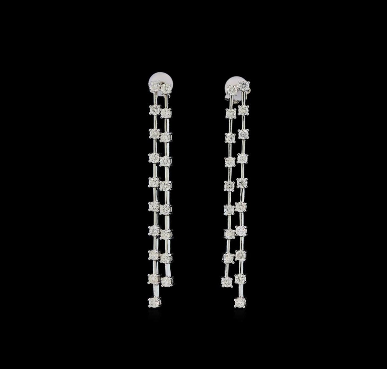 One pair electronically tested 14KT white gold ladies cast diamond earrings with friction posts with a bright polish finish. Identified with markings of "585". Condition is new. Containing: Thirty-Eight prong set round brilliant cut diamonds, measuring 2.40 - 2.40 x 1.44mm (depth est.) approximate total weight of 38 Stones = 2.25ct. Clarity: SI-1 to I-1. Color: I - J, Cut is Good. All diamonds are graded in the mounting, unless otherwise stated. Total Weight of Diamonds 2.25ct. Total Weight of Earrings 7.00 grams. GGL Appraised at $4,860.00.