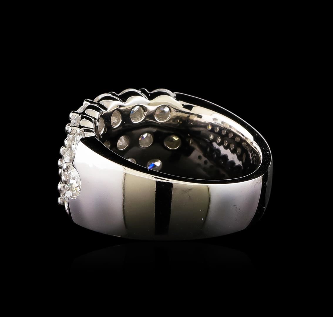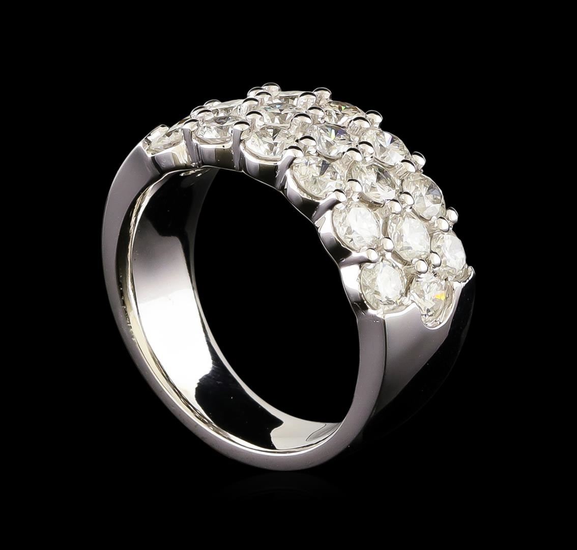 One electronically tested 14KT white gold ladies cast diamond ring with a tapered shank with a bright polish finish. Identified with markings of "14K". Condition is new. Containing: Nineteen prong set round brilliant cut diamonds, measuring 3.50 - 3.50 x 2.10mm (depth est.) approximate total weight of 19 Stones = 2.98ct. Clarity: I-1 to I-2. Color: J - K, Cut is Good. All diamonds are graded in the mounting, unless otherwise stated. Total Weight of Diamonds 2.98ct. Total Weight of Ring 12.30 grams. GGL Appraised.